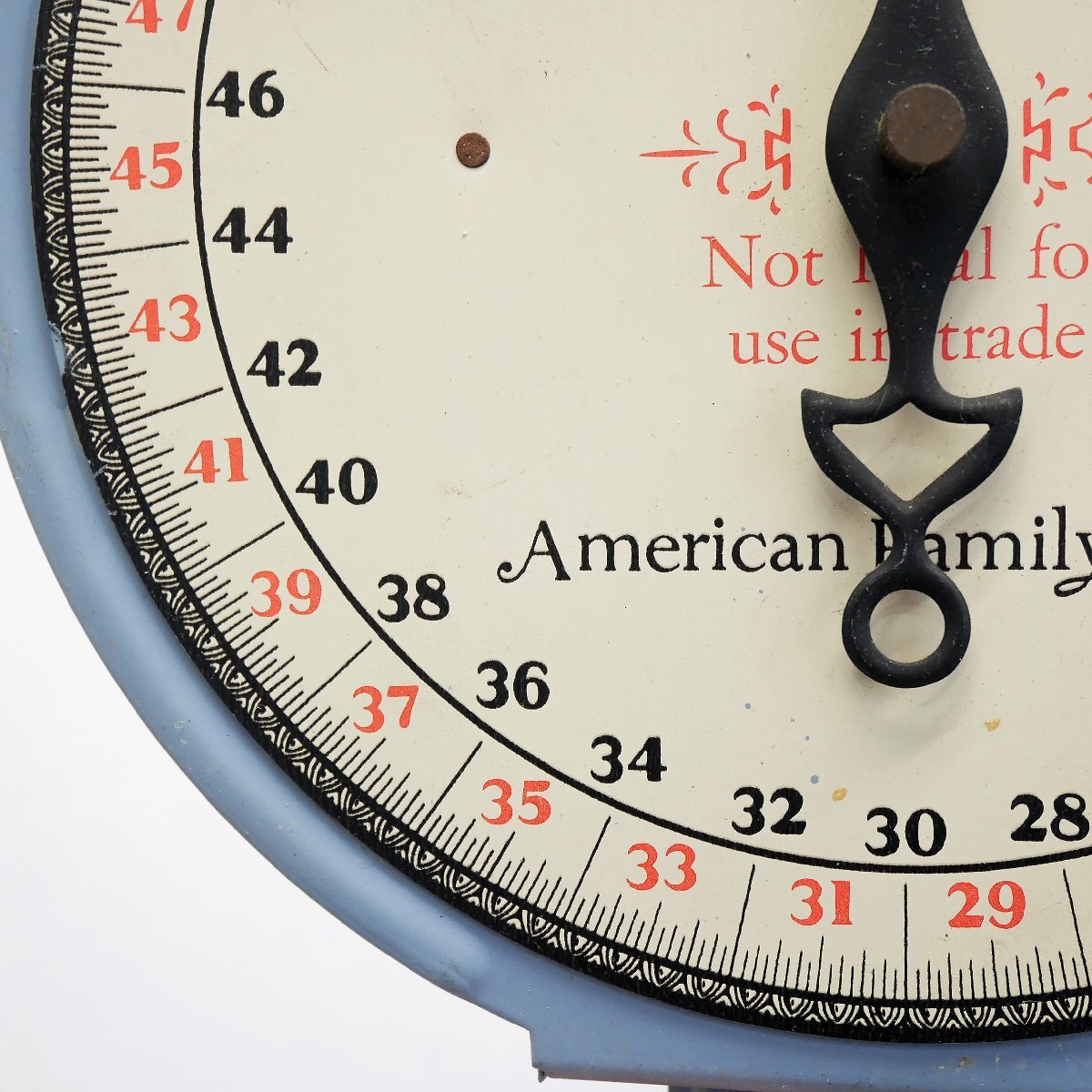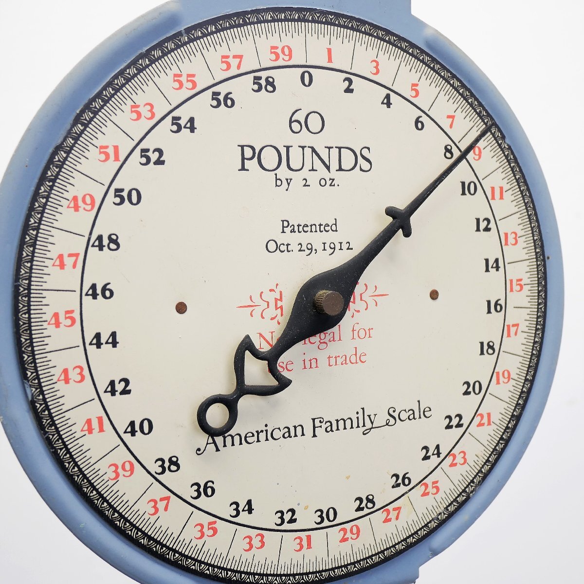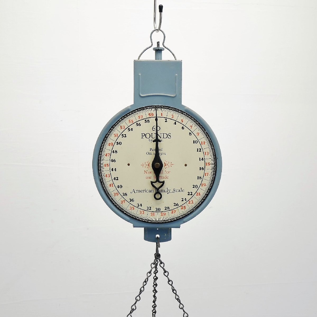 商品説明 explanation | 1950年代頃の「American Family Scale」のハンギングスケールです。 60ポンド(約27Kg)まで、はかることができます。 市場のような雰囲気づくりにいかがでしょうか。 |