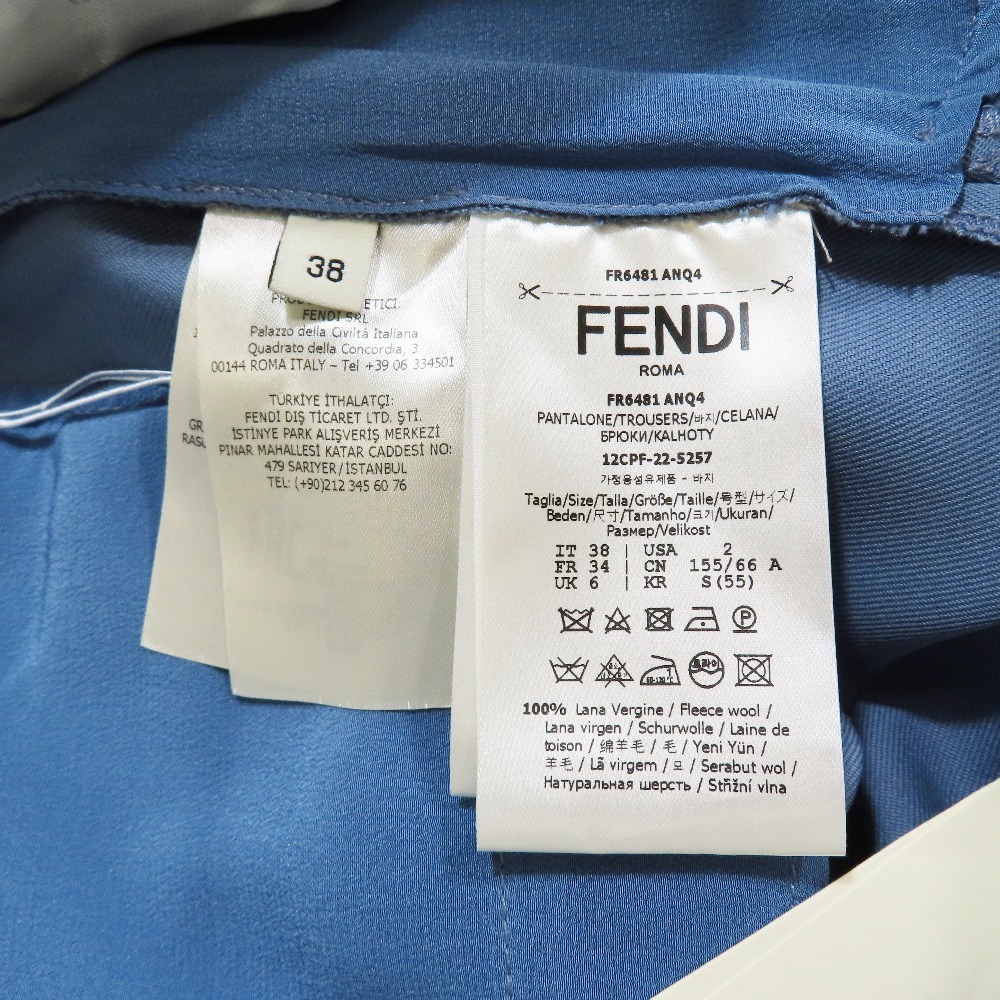 新品同様 2022年製 FENDI フェンディ ワイドパンツ スラックス ブーツカット フレア センタープレス ロゴベルト付 36 サックスブルー