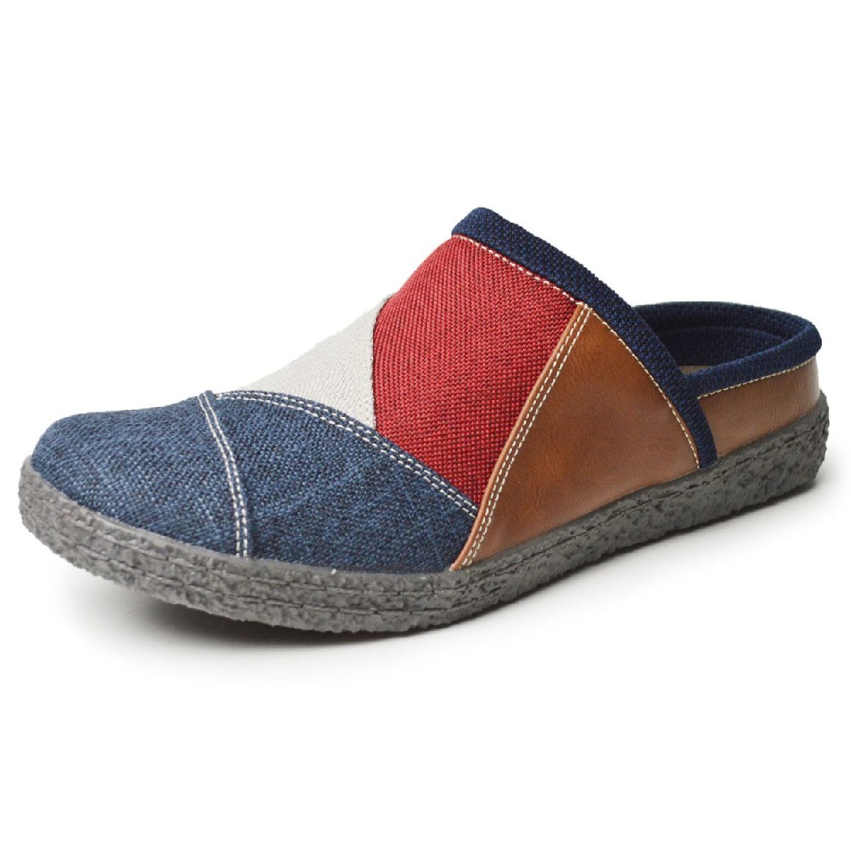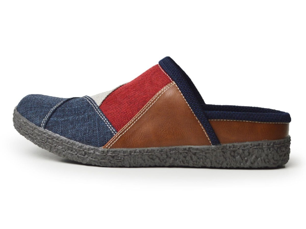 新品■27.5~28cm サボサンダル メンズ スリッポン クロッグ 軽量 靴 着脱簡単 トリコ パッチワーク 屈曲性 スリッパ デニム【エコ配送】