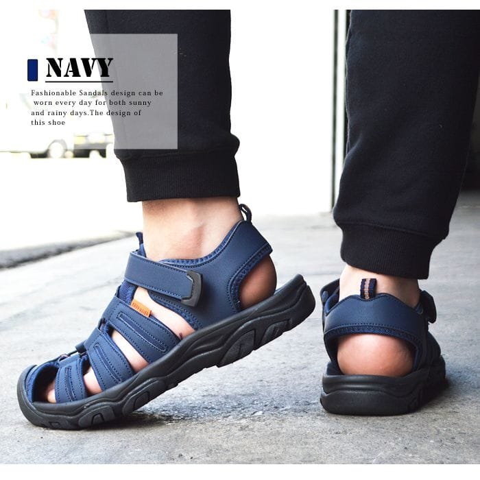 サンダル メンズ スポーツ 軽量 ストラップ コンフォート アウトドア ビーチ アクアシューズ 防滑 ベルクロ【エコ配送】kri9923