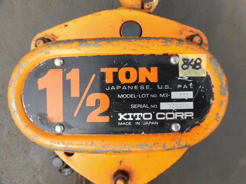 埼玉川越発★848 KITO キトー 1.5t M3型 手動 チェーンブロック 揚程 約3m 動作確認済み 中古 売切★