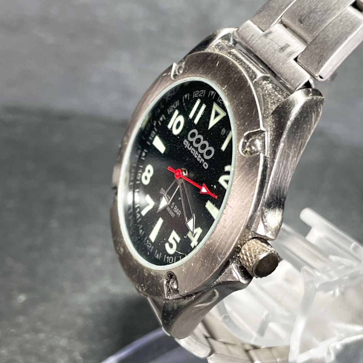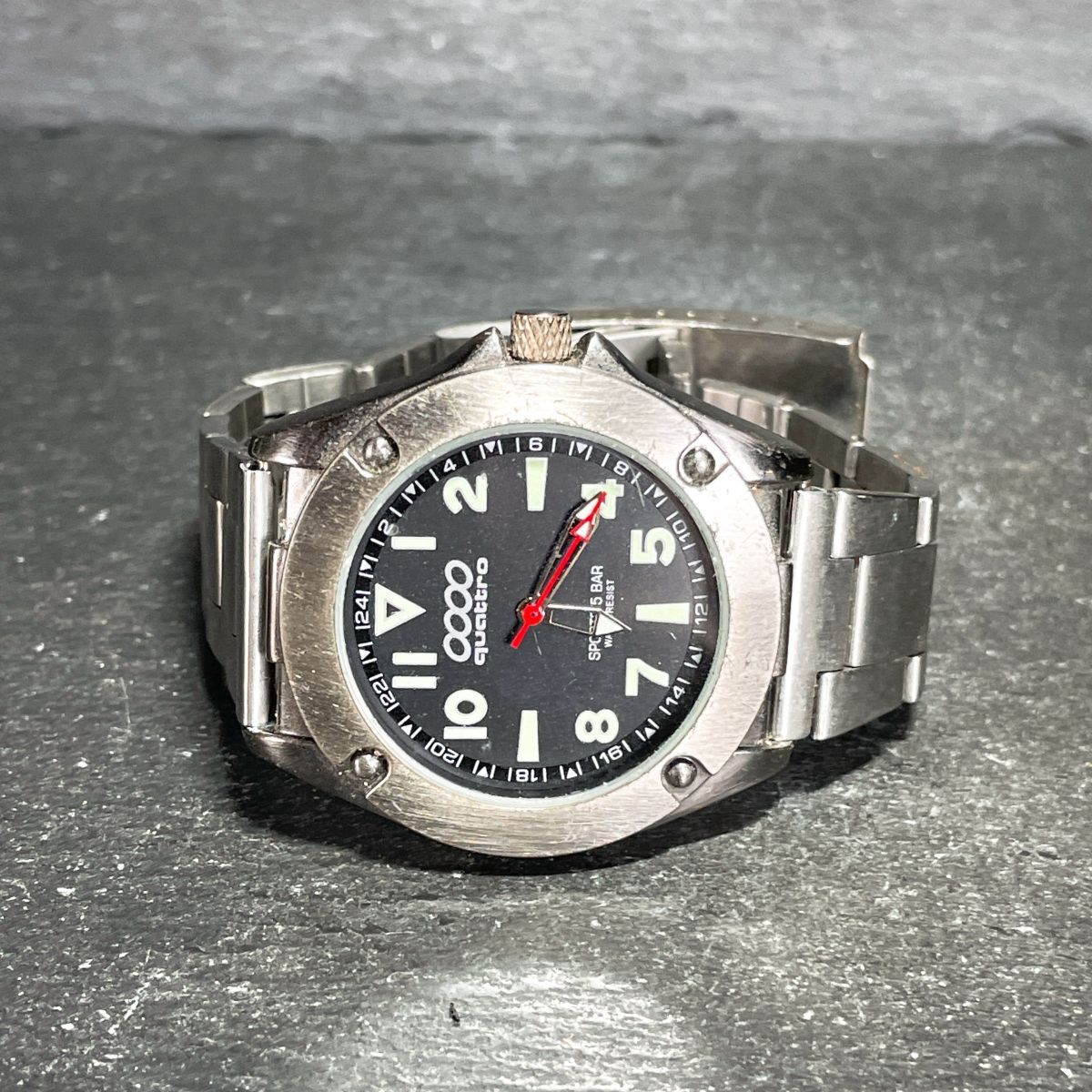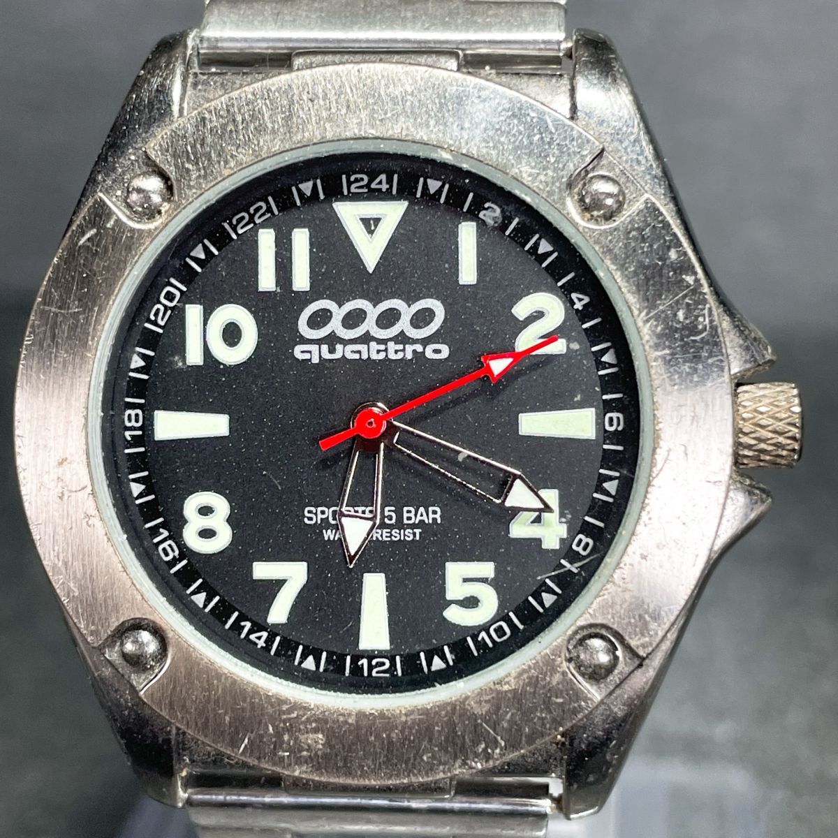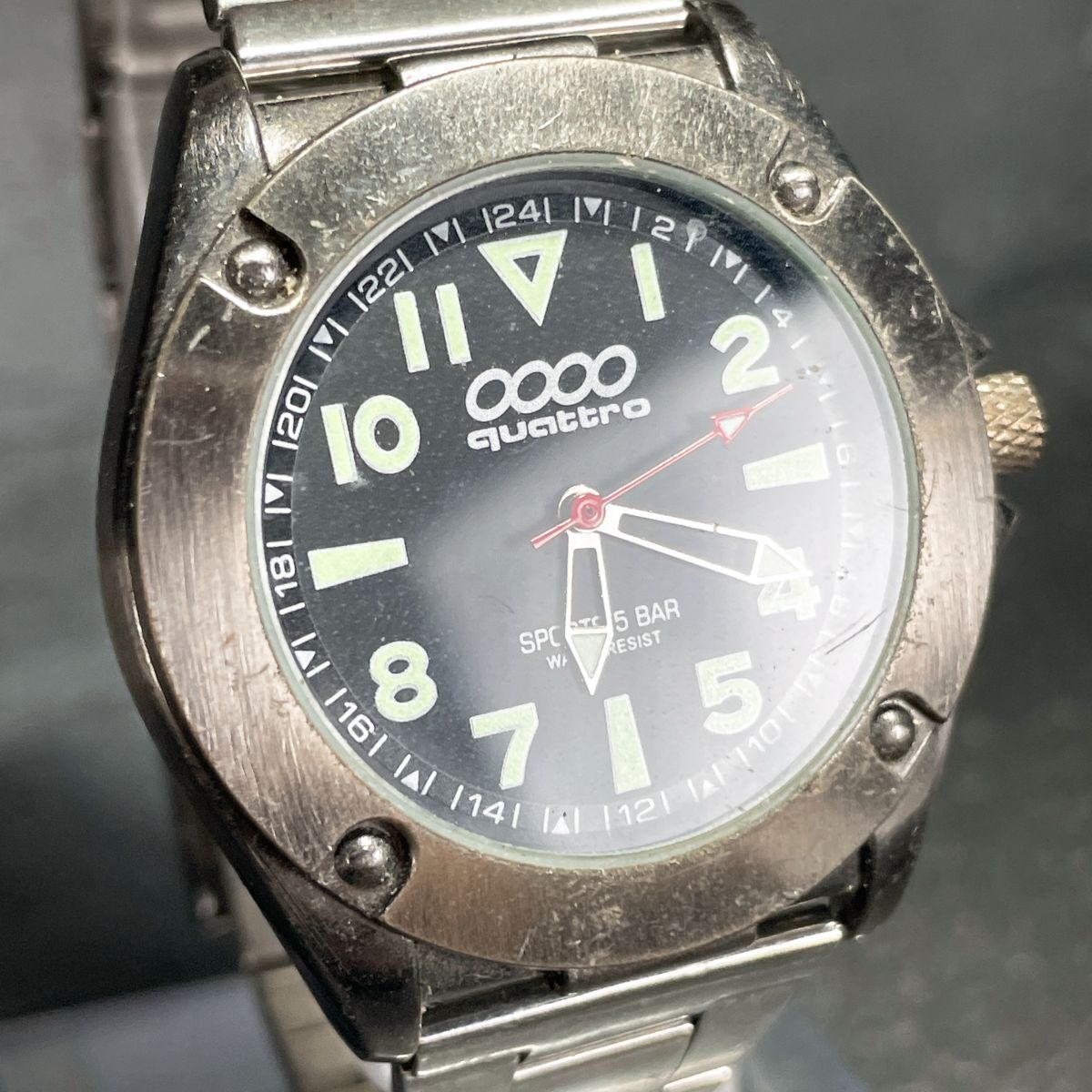 quattro クワトロ 腕時計 アナログ クオーツ 3針 ブラック文字盤 メタルバンド シルバー ラウンド 新品電池交換済み 動作確認済み