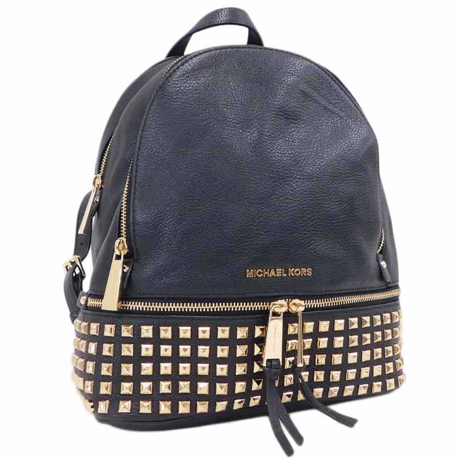1円■ 極美品/マイケルコース/リュック/ブラック×ゴールド系/レザー/リア/MICHAEL KORS ■E.Bee.pS-25[中古]
