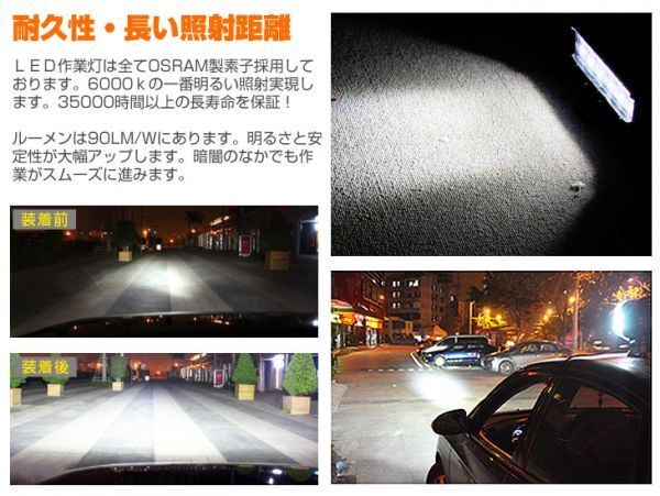 高輝度 10個セット OSRAM製LEDチップ12個搭載 36W LED作業灯 DC10/30v 3240lm 狭角 IP67夜釣り/船舶 6000K 1年保証(206B)