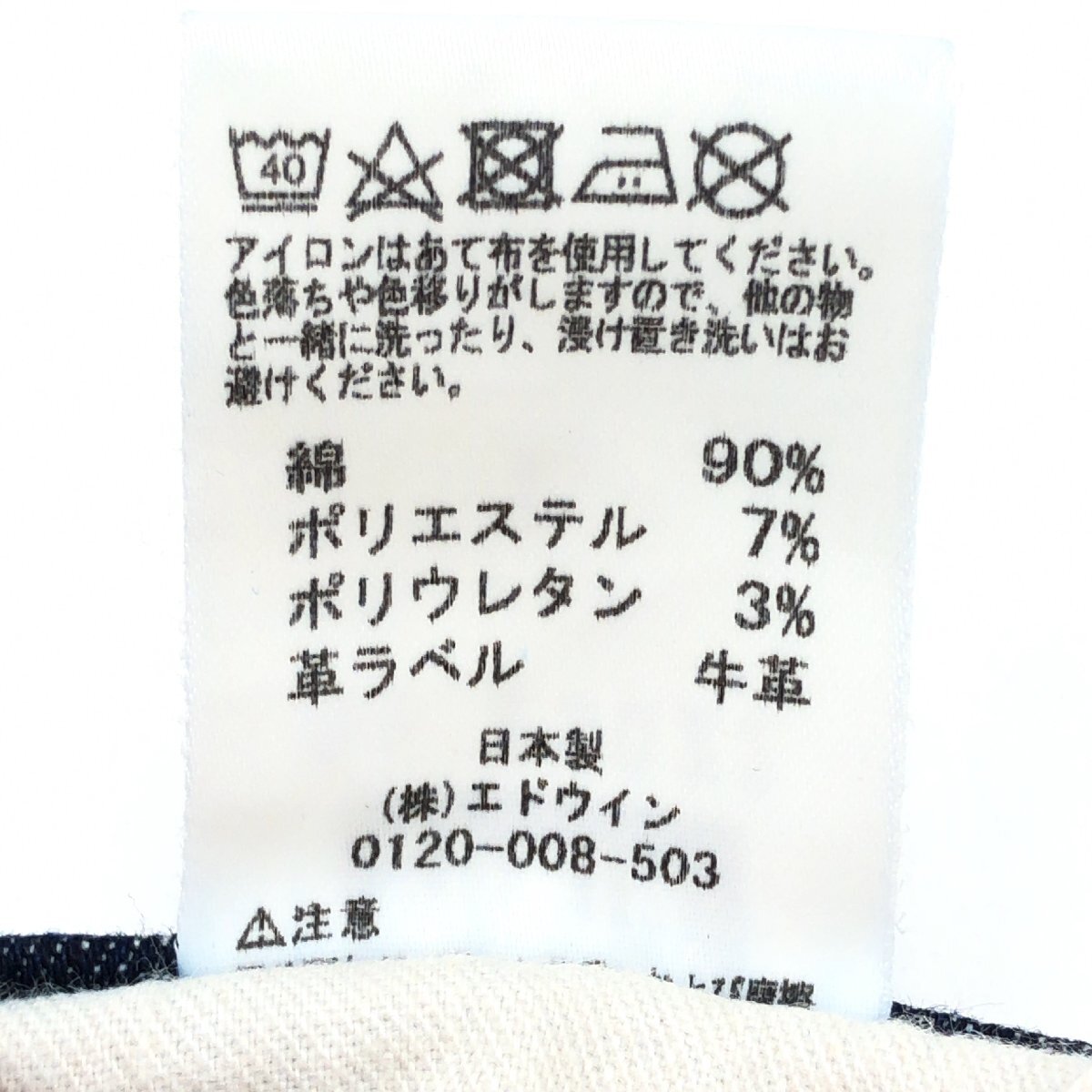 素材 : 本体/コットン90% ポリエステル7% ポリウレタン3% 革ラベル/牛革