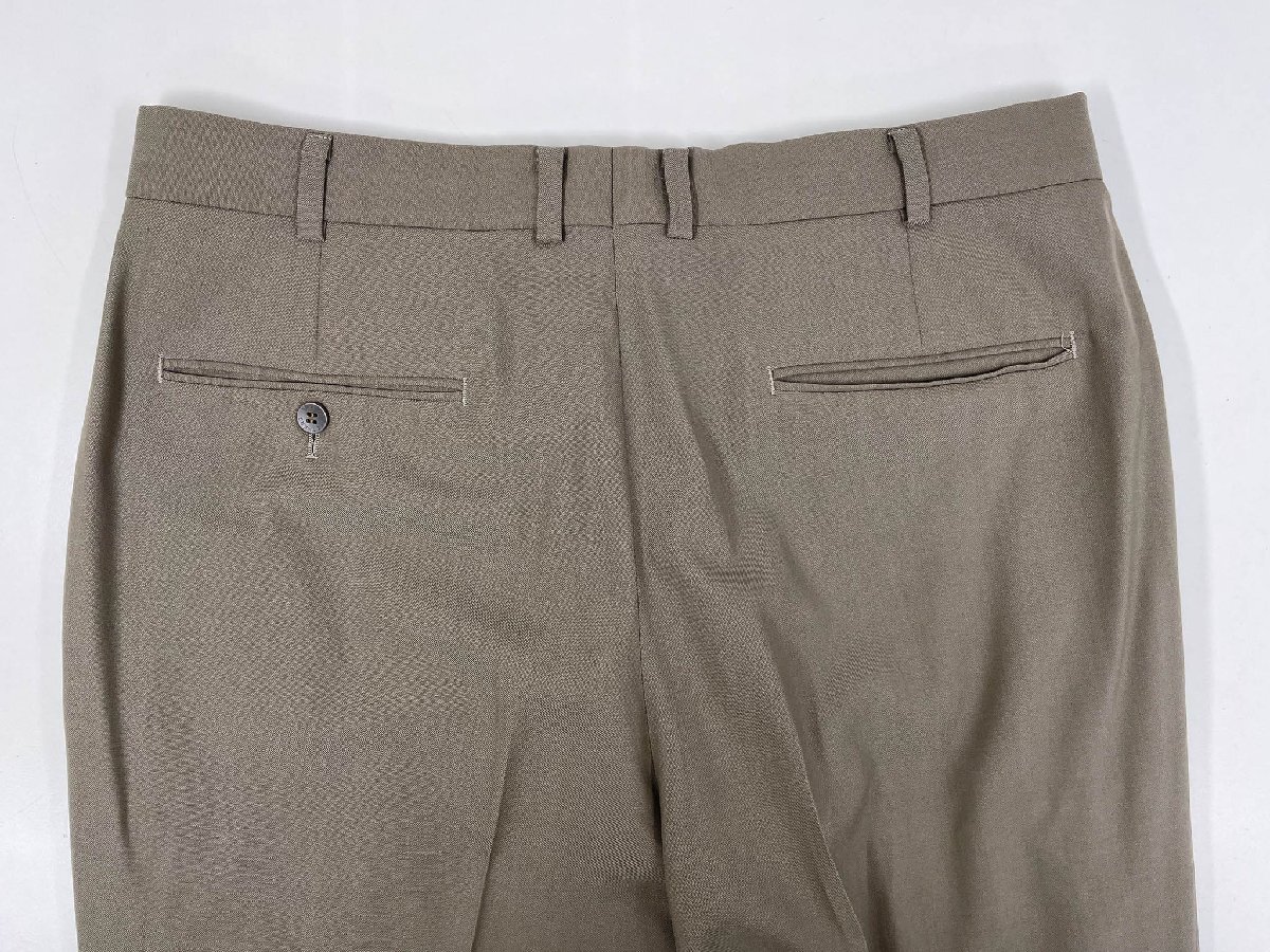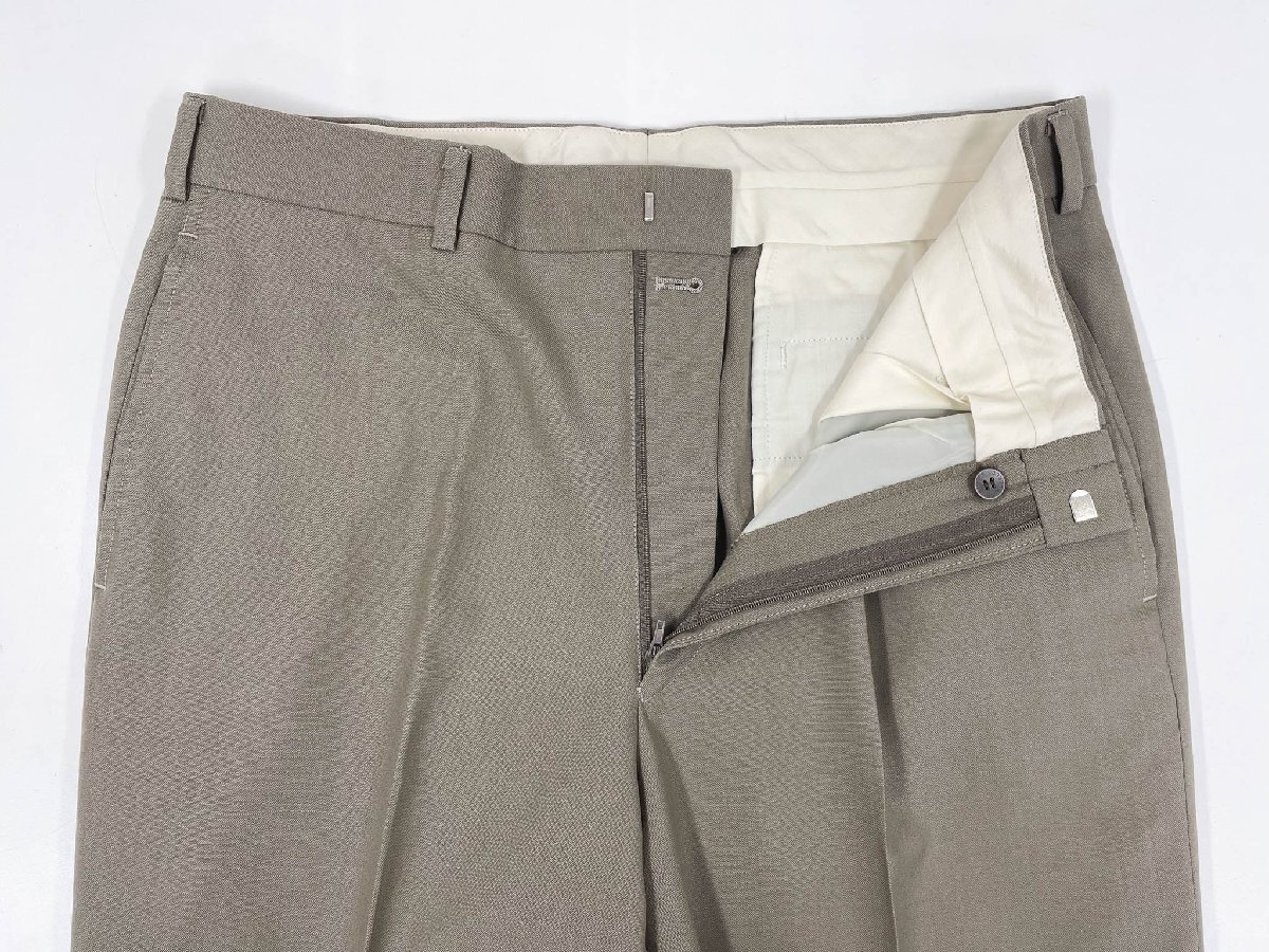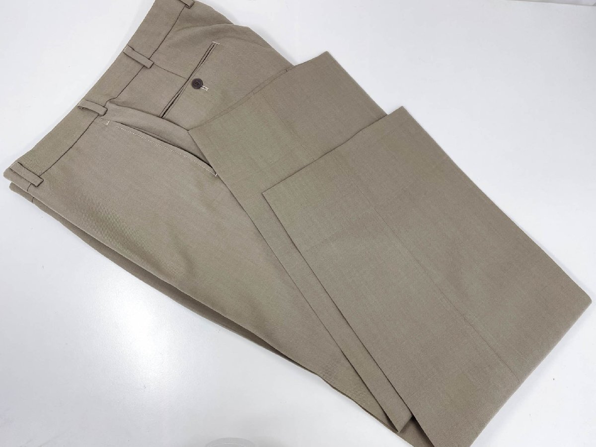 ・スラックス・・・ウエスト実寸約84センチ(4センチ出し、4センチ詰め可能)、股上約30センチ、渡り幅約34センチ、股下約75センチ、総丈約103センチ、裾幅約24センチ、シングル仕上げ(最大でプラス7センチ長くできます)