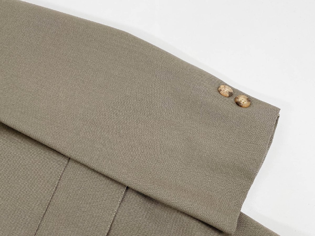 ・ジャケット・・・着丈(襟下から背中心で)約74センチ、身幅約52センチ、肩幅(直線で)約44センチ、袖丈約61センチ、ウエスト幅(第2ボタン付近で)約52センチ