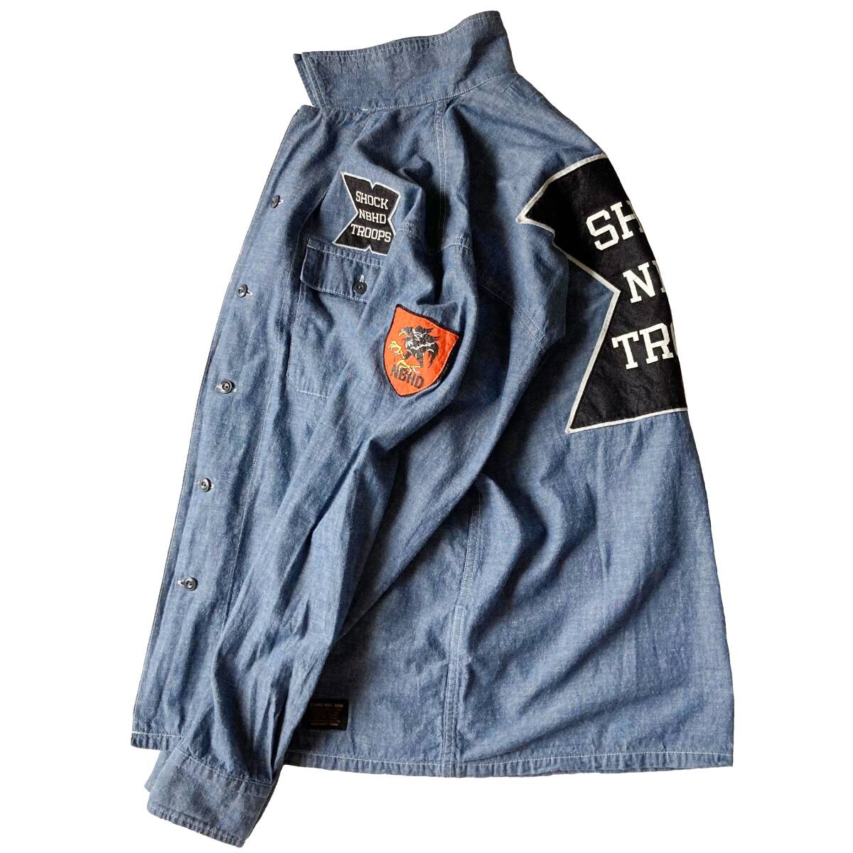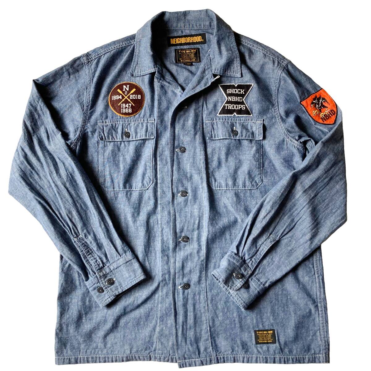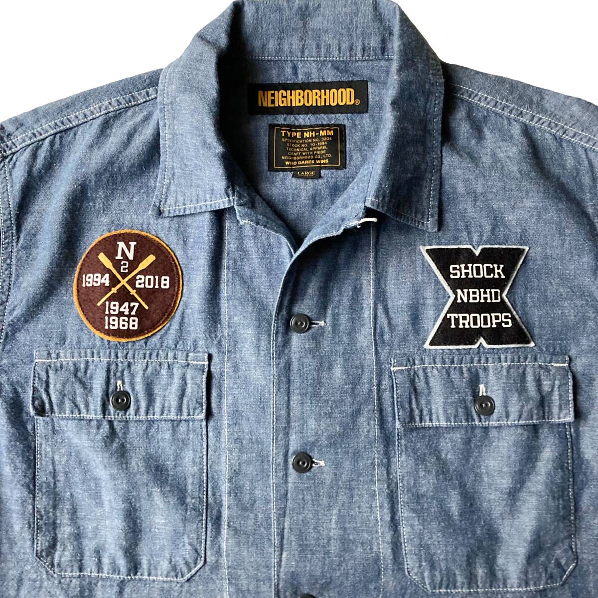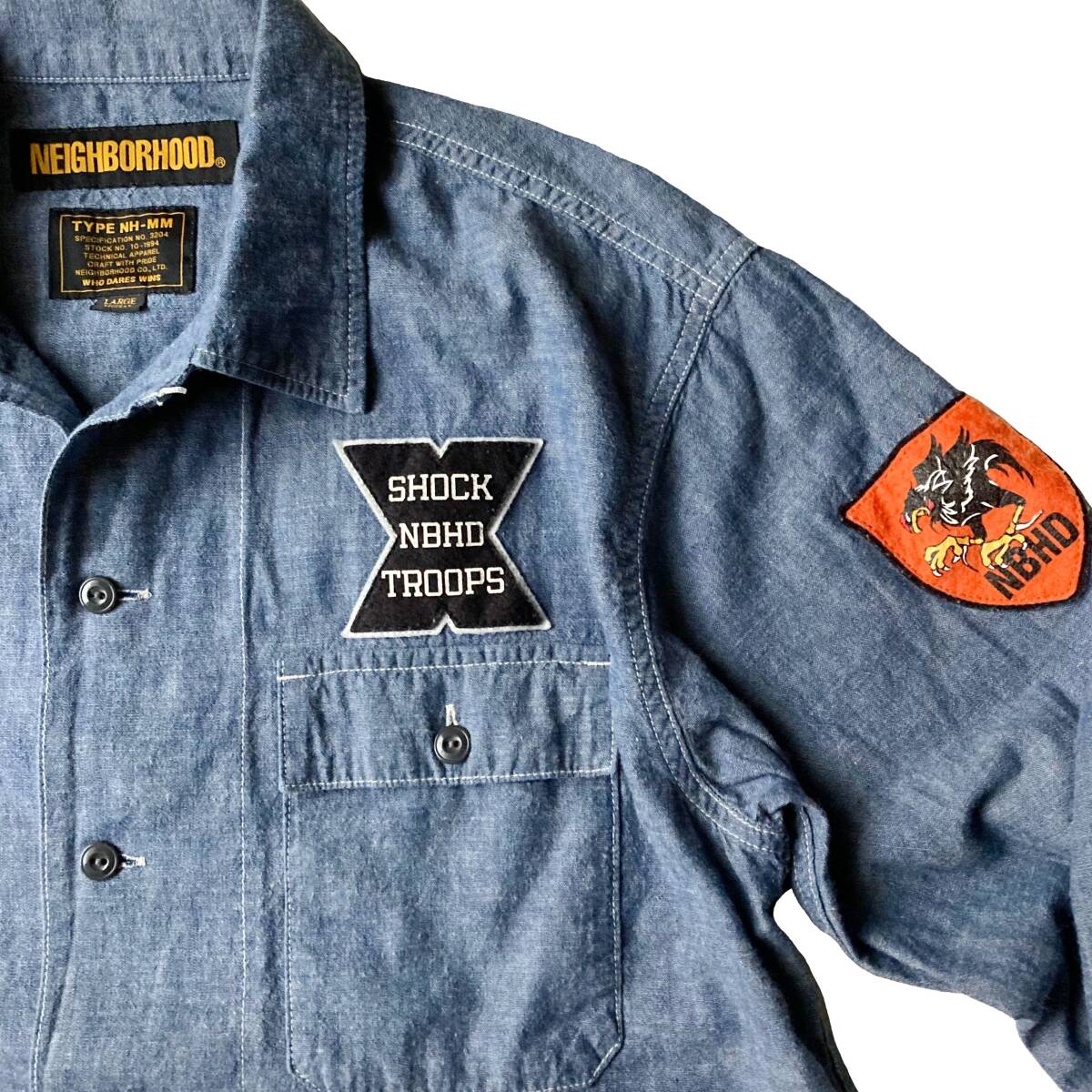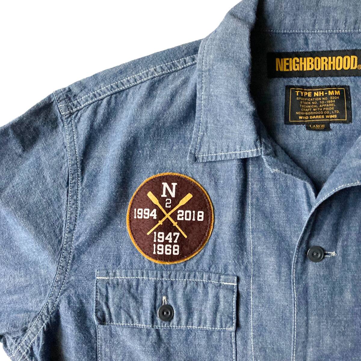 NEIGHBORHOOD ネイバーフッド セルビッチシャンブレー オープンカラーシャツ TYPE NHーMM LARGE ワッペン 日本製 長袖ダンガリーシャツ