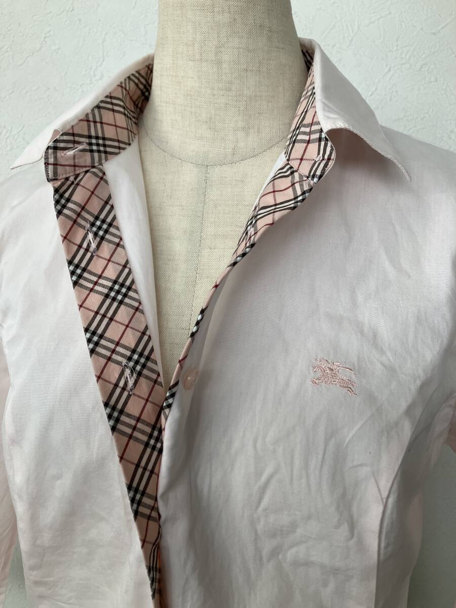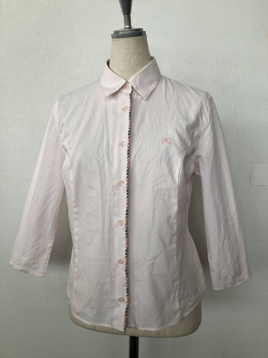 BURBERRY BLUE LABEL バーバリーブルーレーベル 三陽商会製 ピンクチェック使い七分袖シャツ