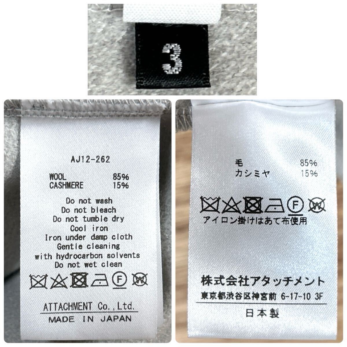 ATTACHMENT アタッチメント CASHMERE BREND CLOTH CREWNECK PULLOVER L/S カシミヤ ブレンド 長袖 カットソー オフホワイト 3