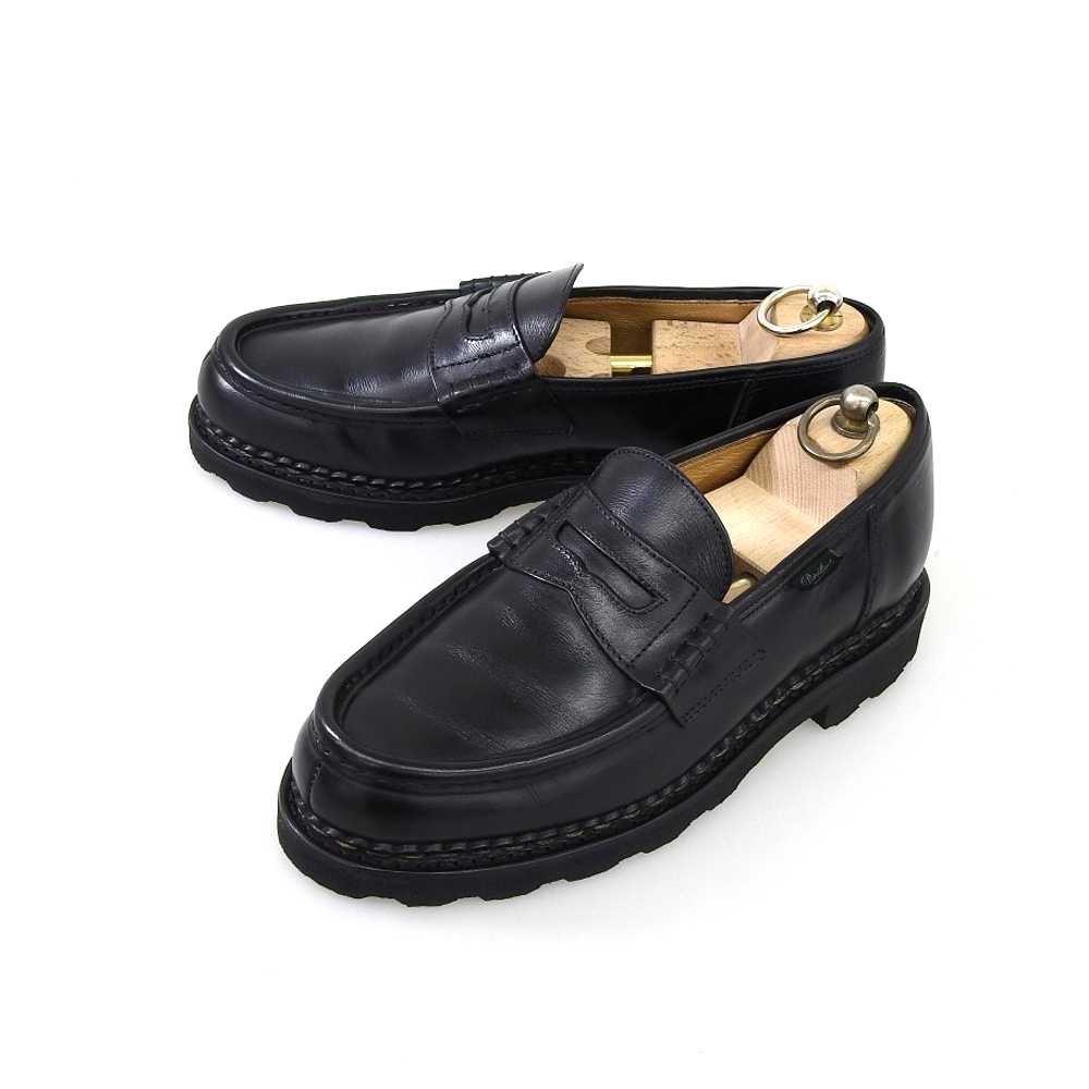【 商品名 】 【10426MD】美品 パラブーツ REIMS(ランス) コインローファー ブラック リスレザー サイズ7 Paraboot 雨天にも強く機能性の高いパラブーツの人気ローファー。唯一無二の存在感を放つランスは現代のファッションとの親和性が高いです。インソックの使用感はあるものの、アッパーに目立ったキズもなく、ソール削れも少ないです。 ・メーカー:パラブーツParaboot ・表記サイズ:7 表記サイズに関するページはこちらです。 ・アウトソール全長:28cm 最大幅:10.5cm ・アッパー:リスレザー ・カラー:ブラック ・付属品:箱 ・程度【Aランク】 ※新品ではありません。USED品であることをご理解の上、入札をご検討下さい。
