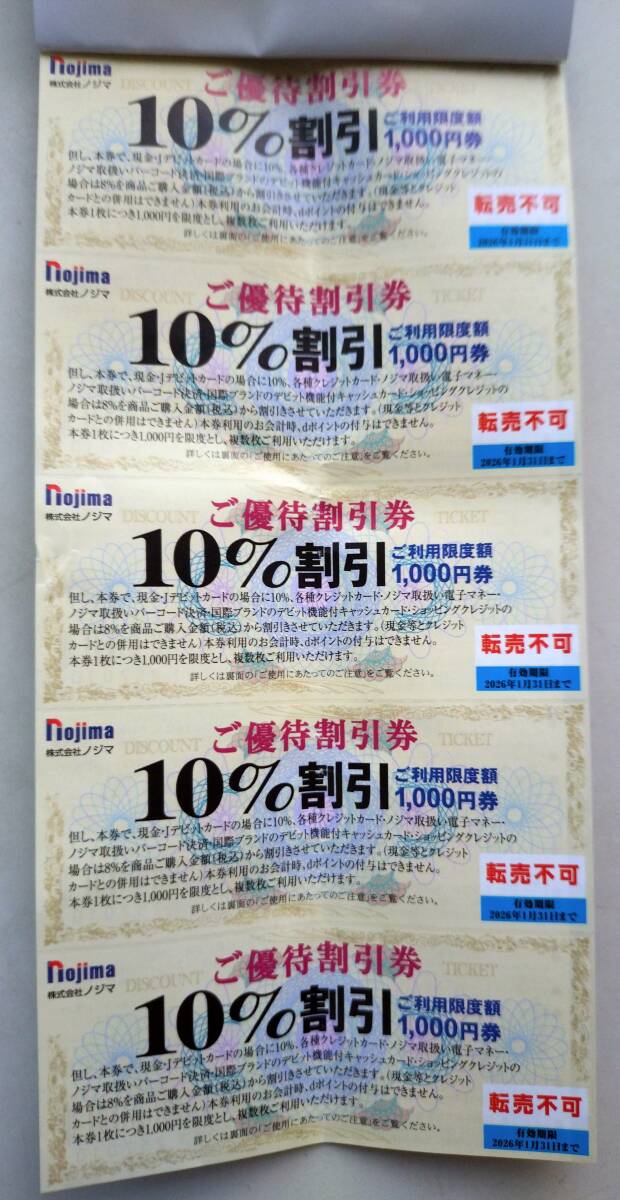 ノジマ 株主優待 ご優待割引券 10%割引 5枚セット【送料込】