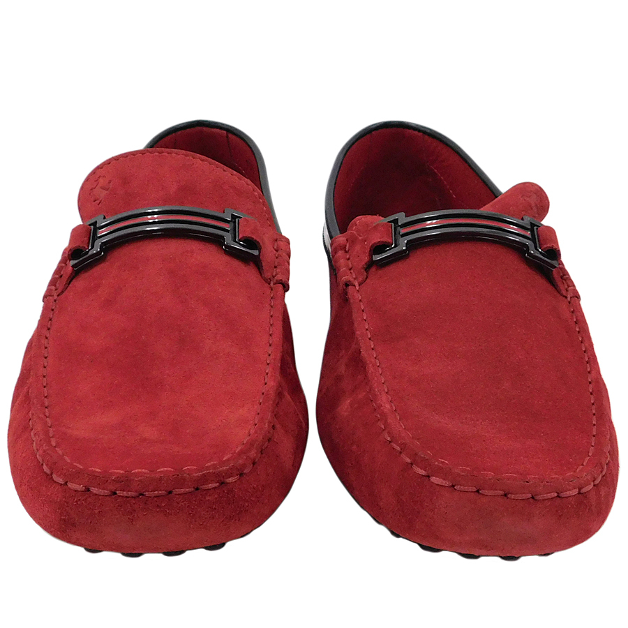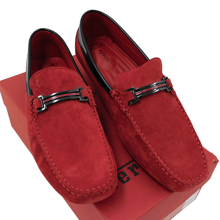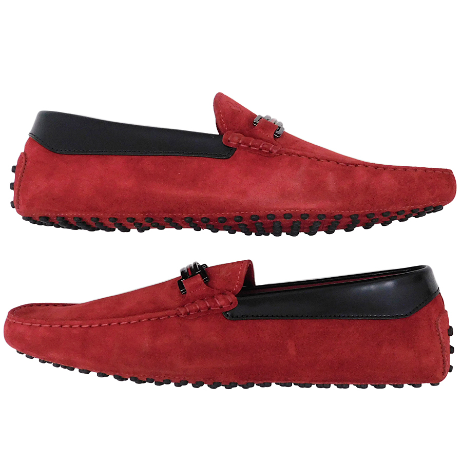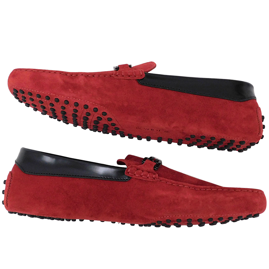 1円■ 極美品/トッズ/靴/レッド×ブラック系/スウェード×レザー/ゴンミーニ×フェラーリコラボ/TODS ■E.Bus.tI-26[中古]