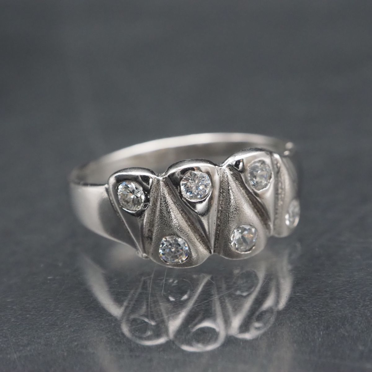 F817 ダイヤモンド風 925刻印 リング デザイン シルバー 指輪 17号