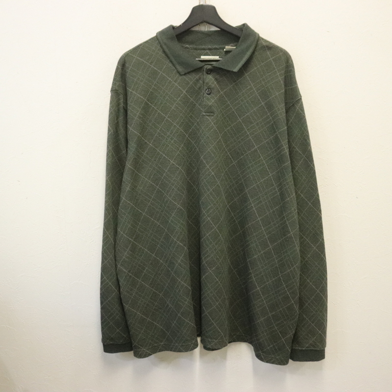 商品名 V27 2000年代製 HAGGAR 長袖ポロシャツ■00s 表記2XLサイズ グリーン チェック アメカジ ストリート 古着 古着卸 激安 希少