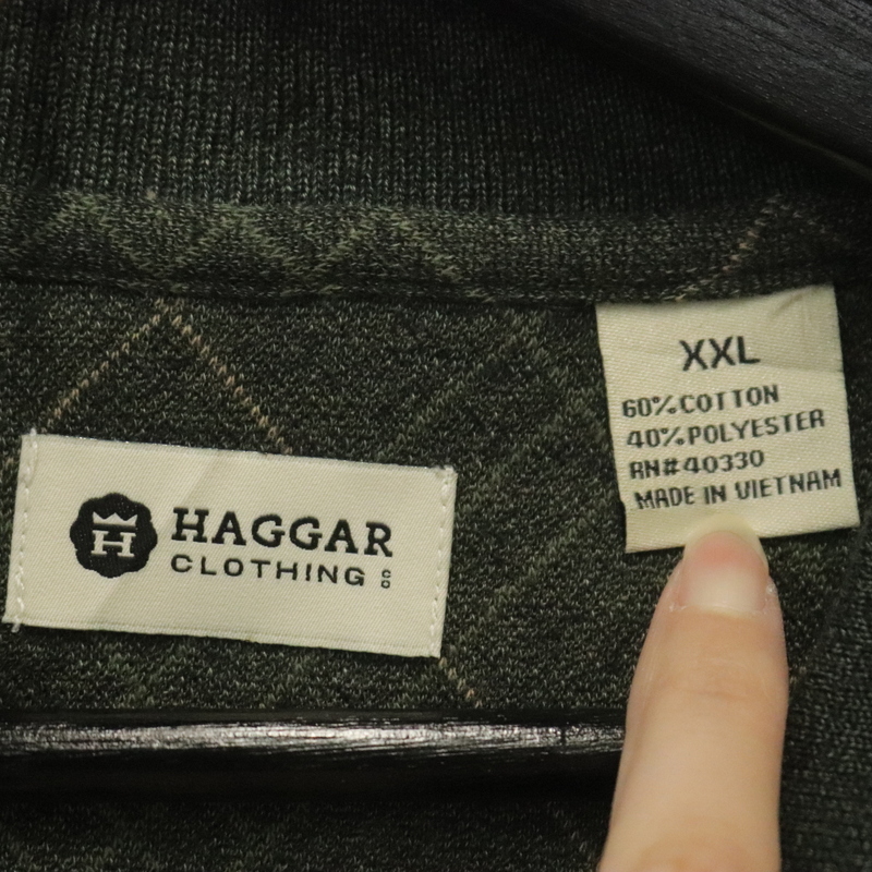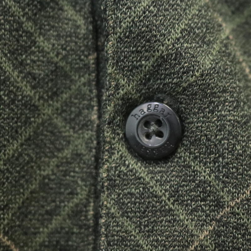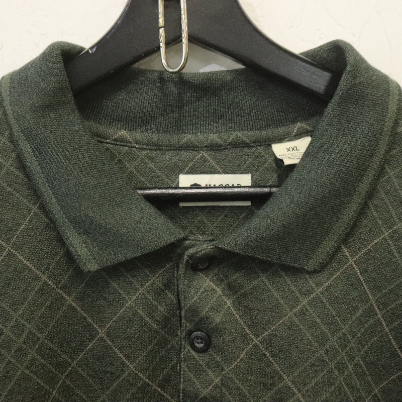 V27 2000年代製 HAGGAR 長袖ポロシャツ■00s 表記2XLサイズ グリーン チェック アメカジ ストリート 古着 古着卸 激安 希少