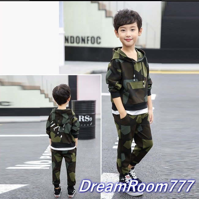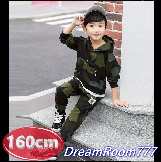 【160cm】ニュアンススター セットアップ 迷彩グリーン パーカー スエット 子供服 女の子 男の子 ルームウェアー 韓国子供服