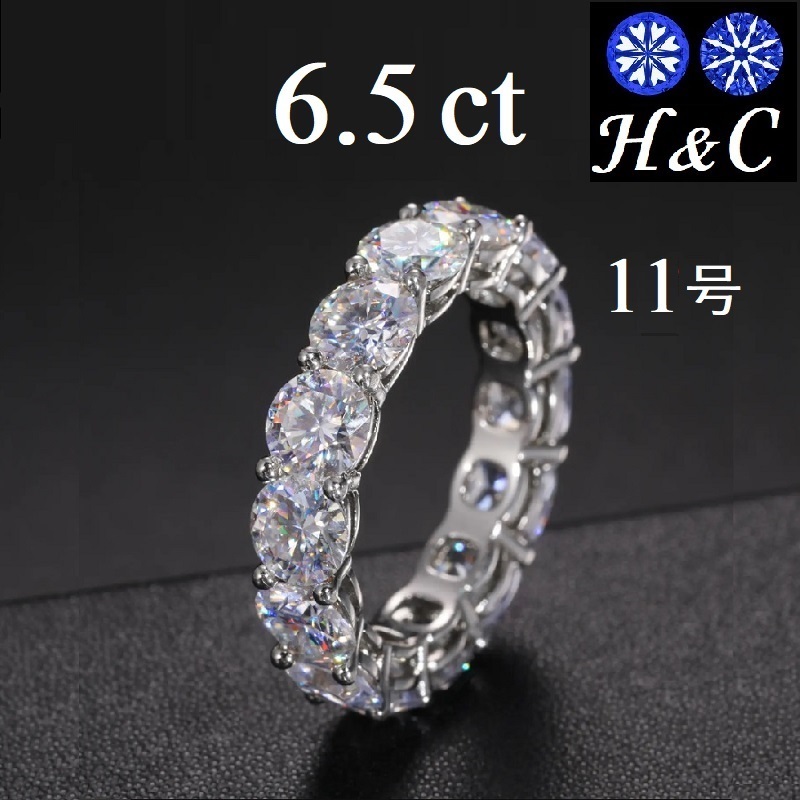フルエタニティ リング 指輪 11号 6.5ct 5mm 婚約指輪 エンゲージリング モアサナイト ハート キューピッド H&C 鑑定書 人工 ダイヤモンド