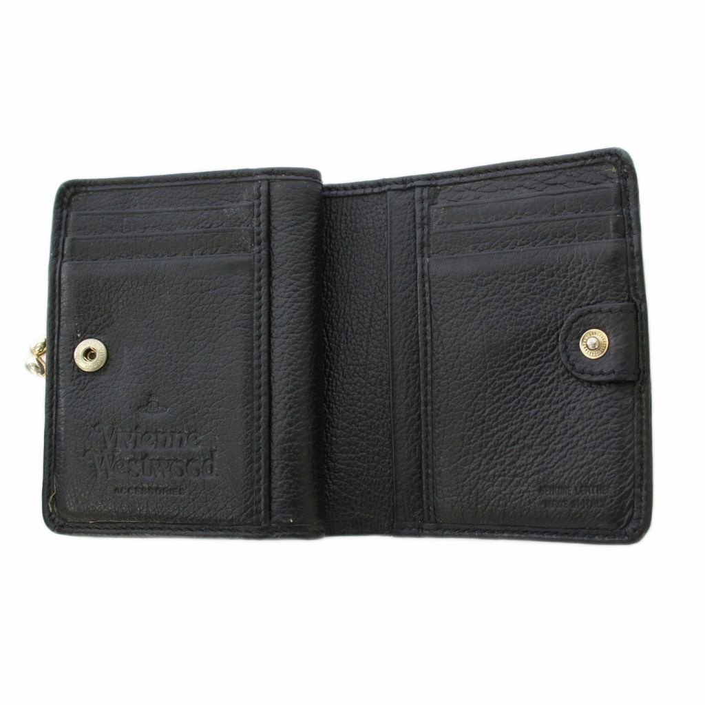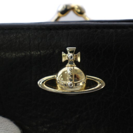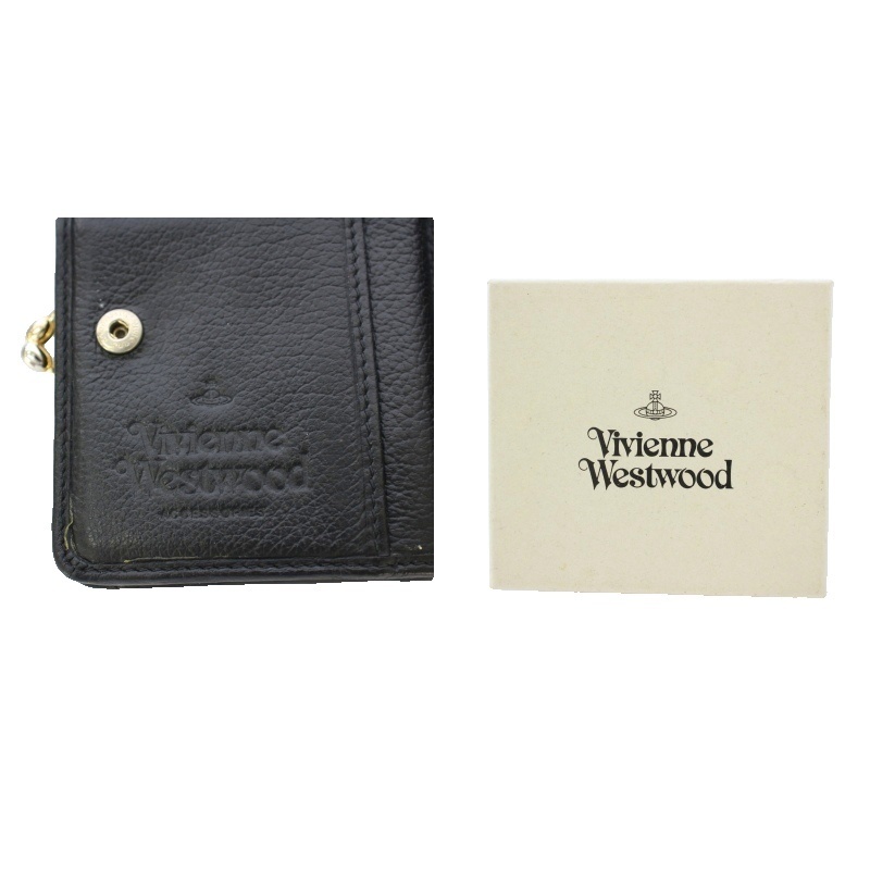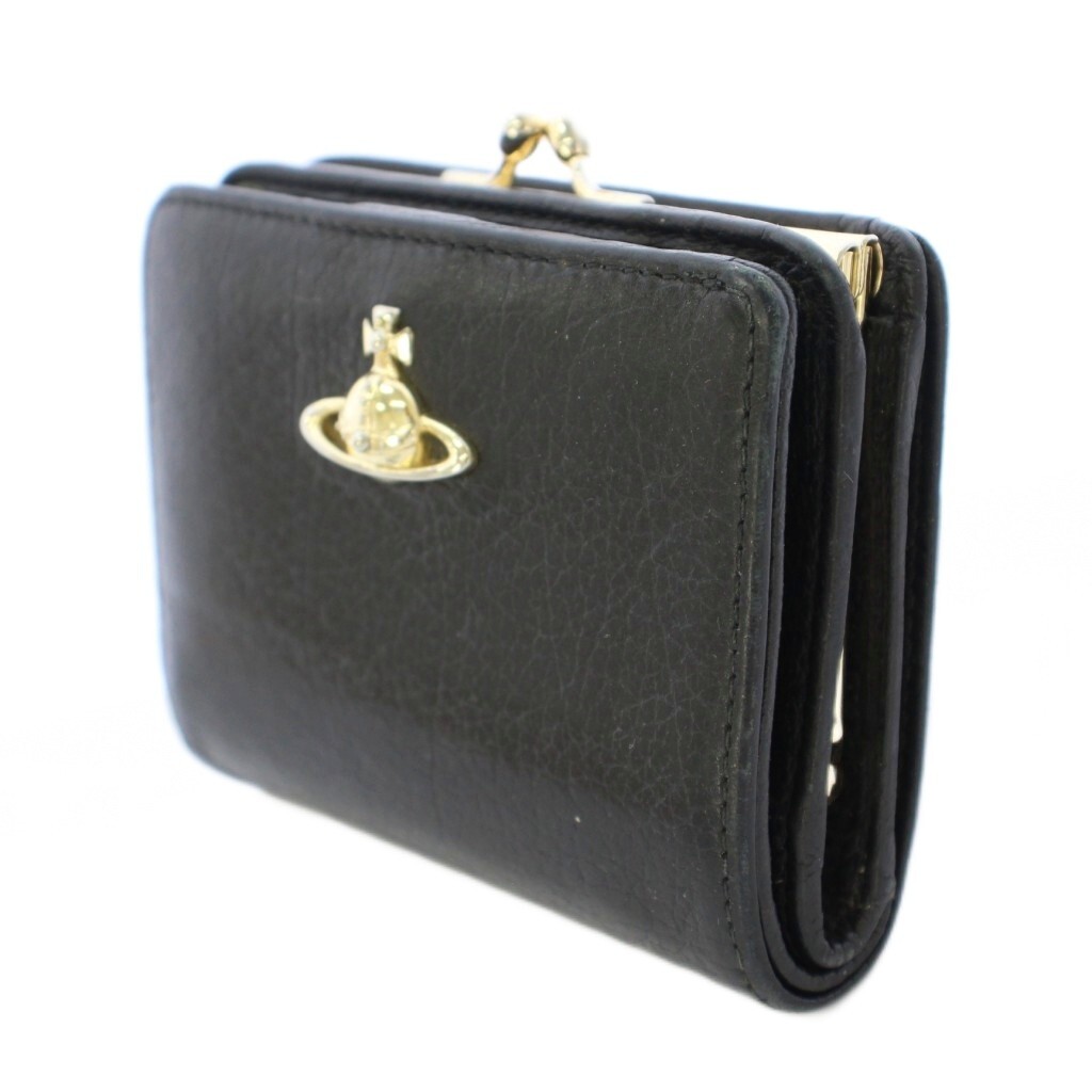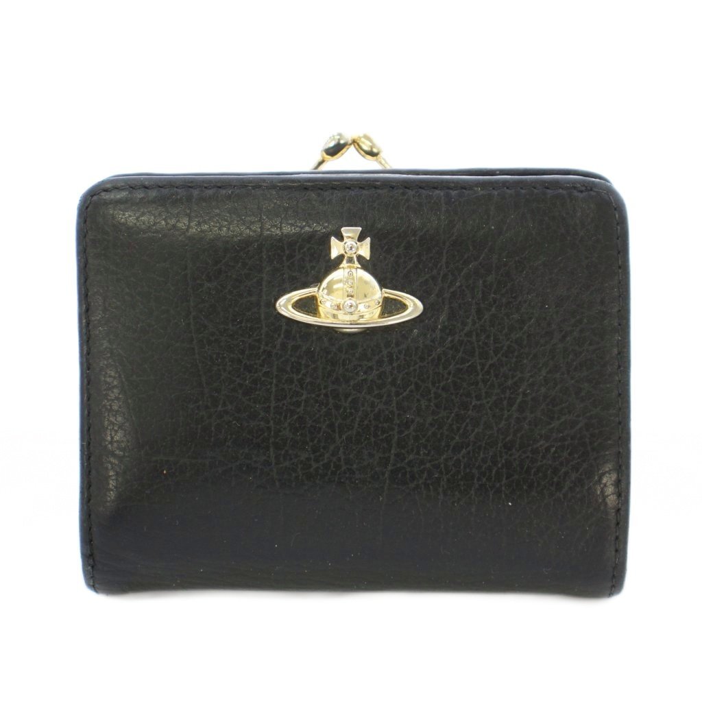 ヴィヴィアンウエストウッド Vivienne Westwood 二つ折り財布 コンパクトウォレット がま口 レザー オーブ ロゴ レザー スクエア 黒