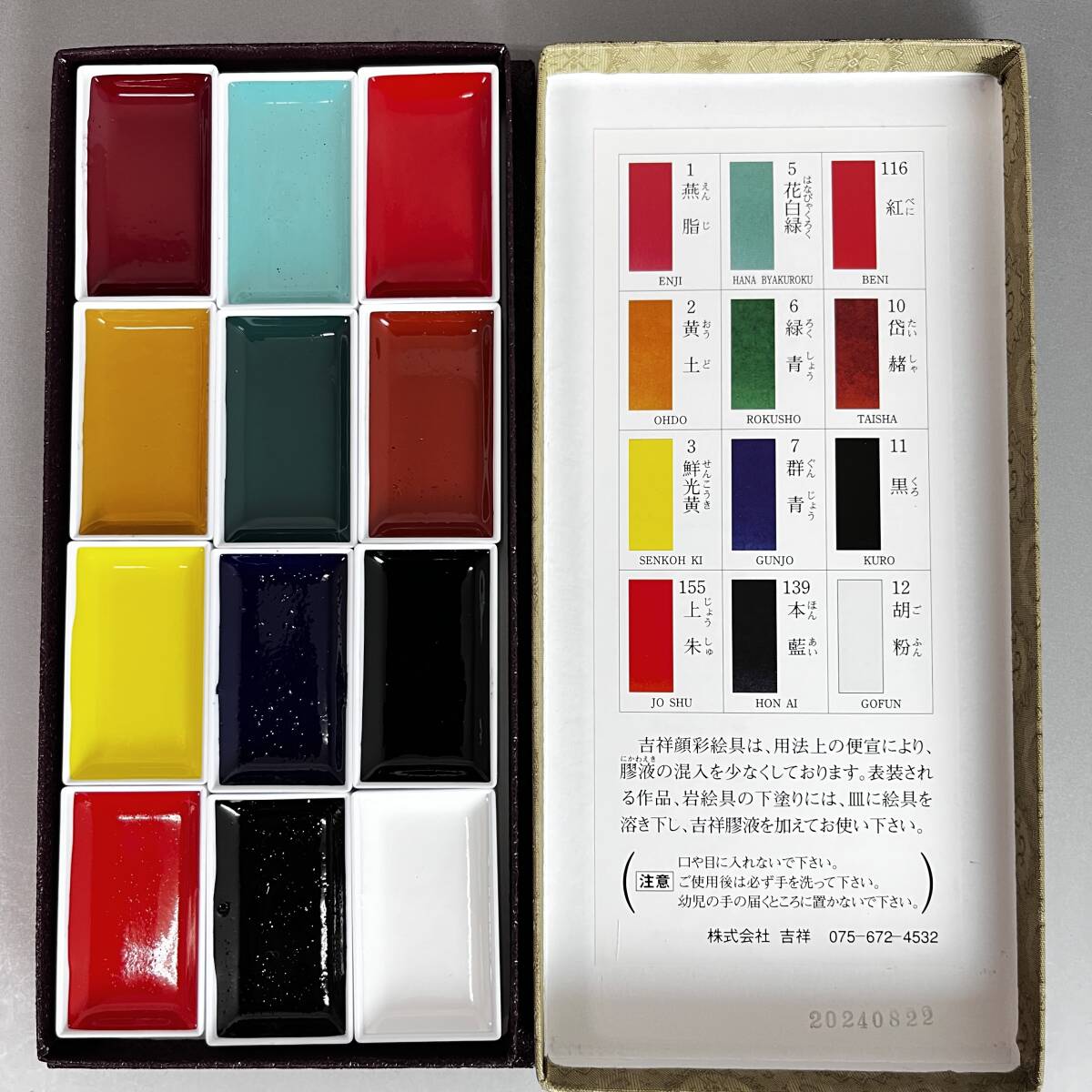 そして、角皿に入れて乾燥させたものを顔彩、丸皿に入れたものを鉄鉢といい、日本画材料の中ではとくに普及している絵具です。