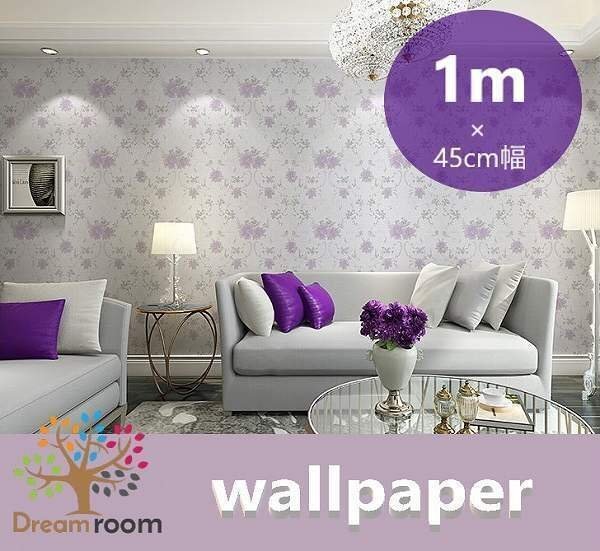 少量パック【 1m 】 花柄 薔薇×紫 壁紙 アンティーク ウォールペーパー北欧風 インテリア リビング はがせる シール DIY