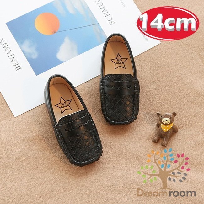 kids イントレチャート ローファー シューズ 【ブラック 14cm】靴 フォーマル 編み込み 合皮 入学式 レザー