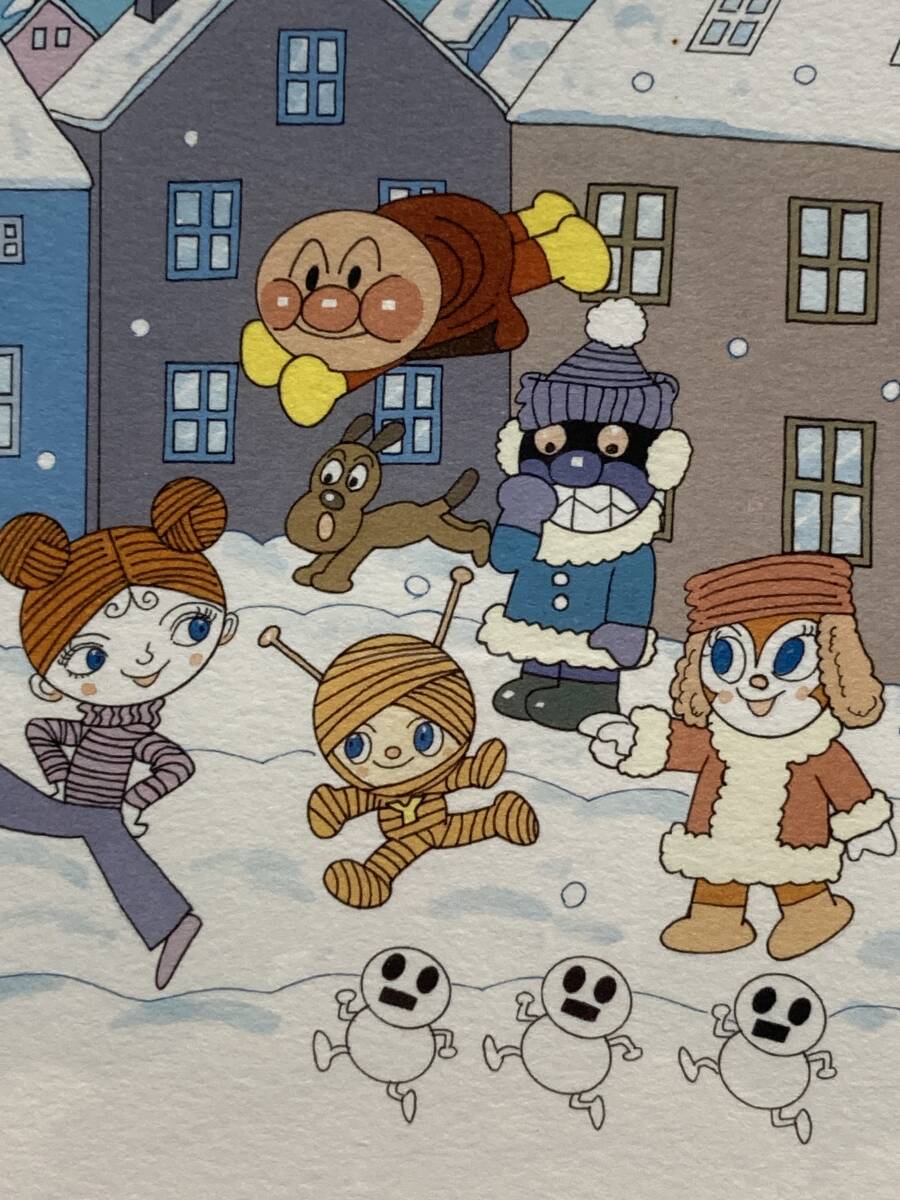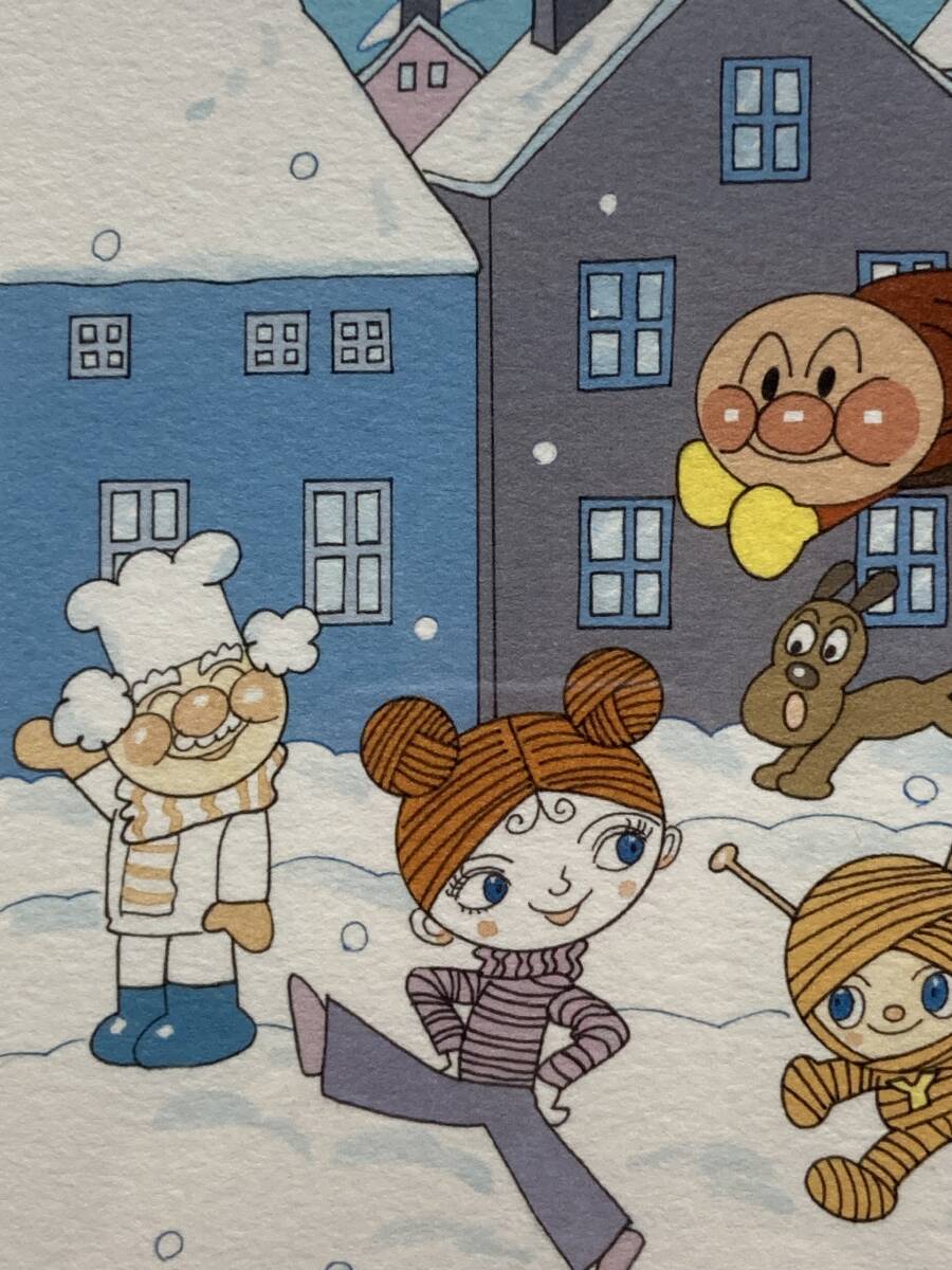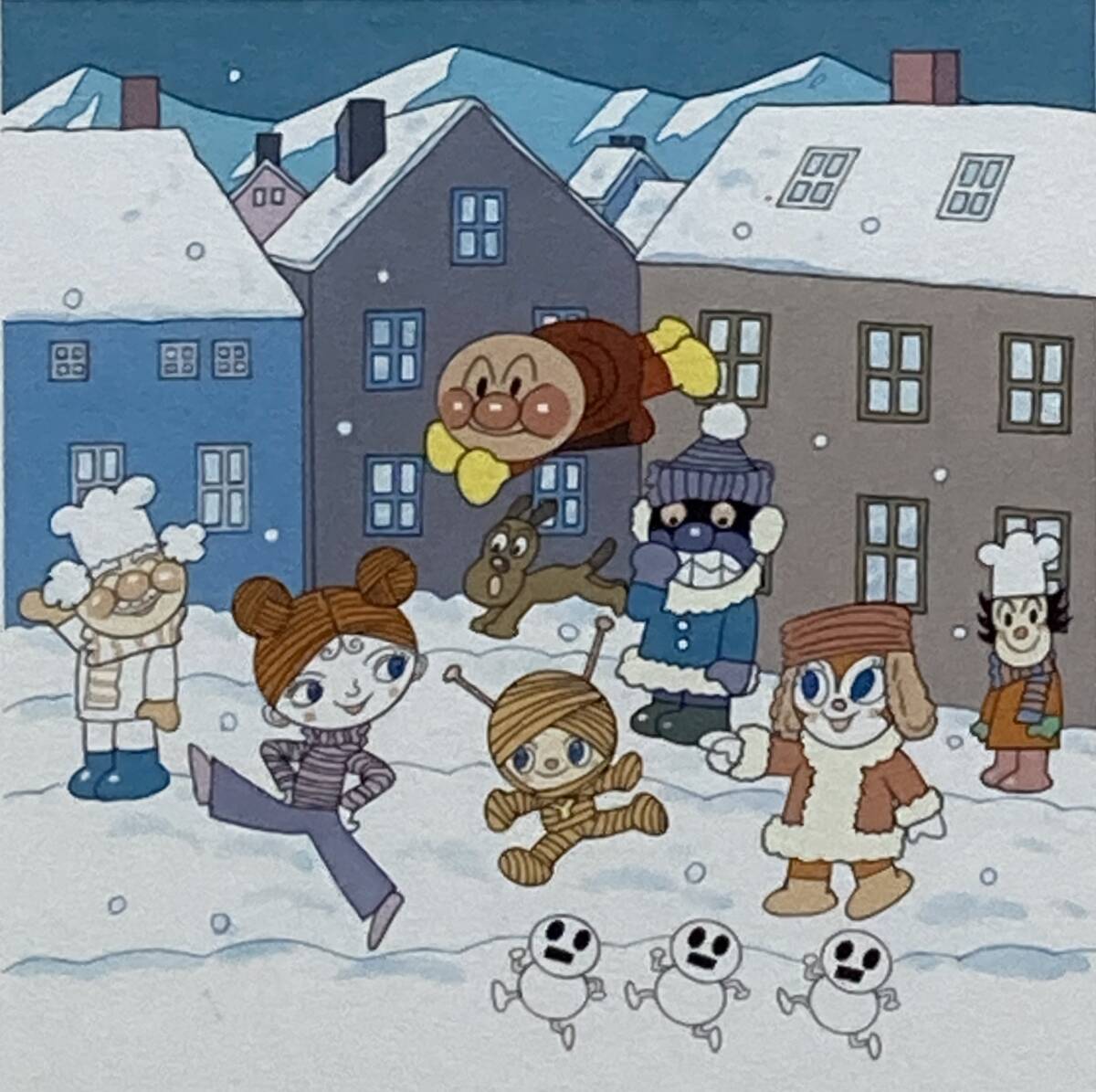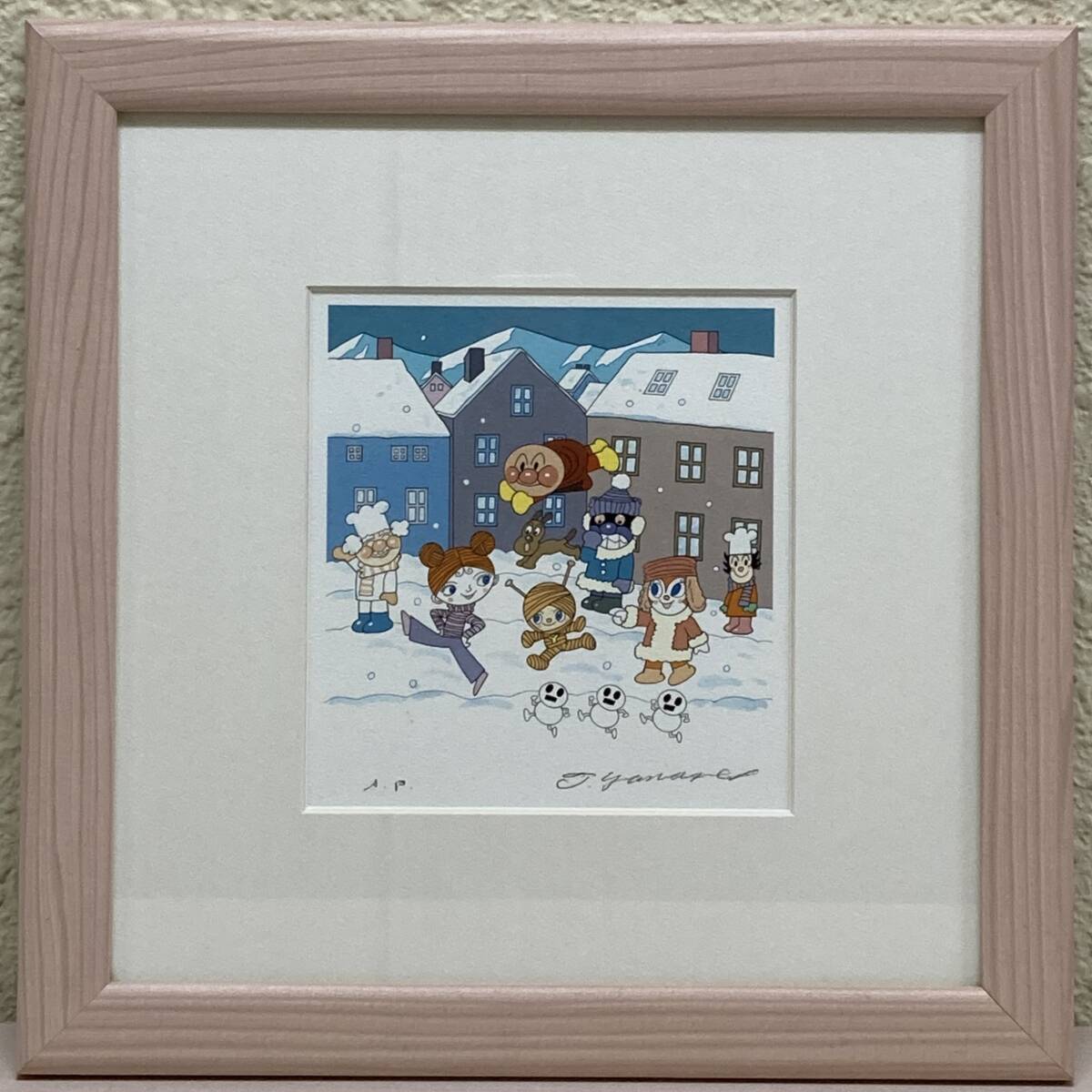 やなせたかし「雪降る広場であそぼうよ」ジクレー版画 A.P. アンパンマン バイキンマン 額装 真作保証 C