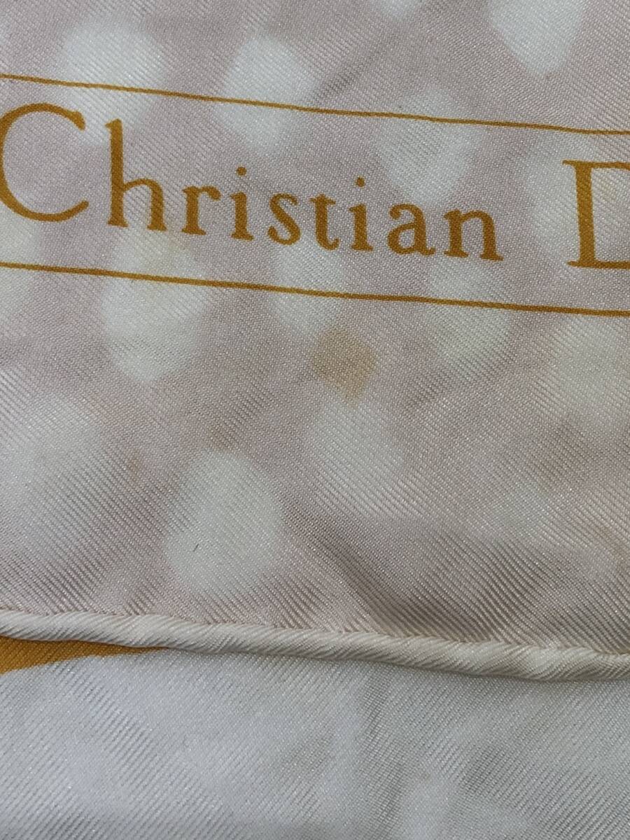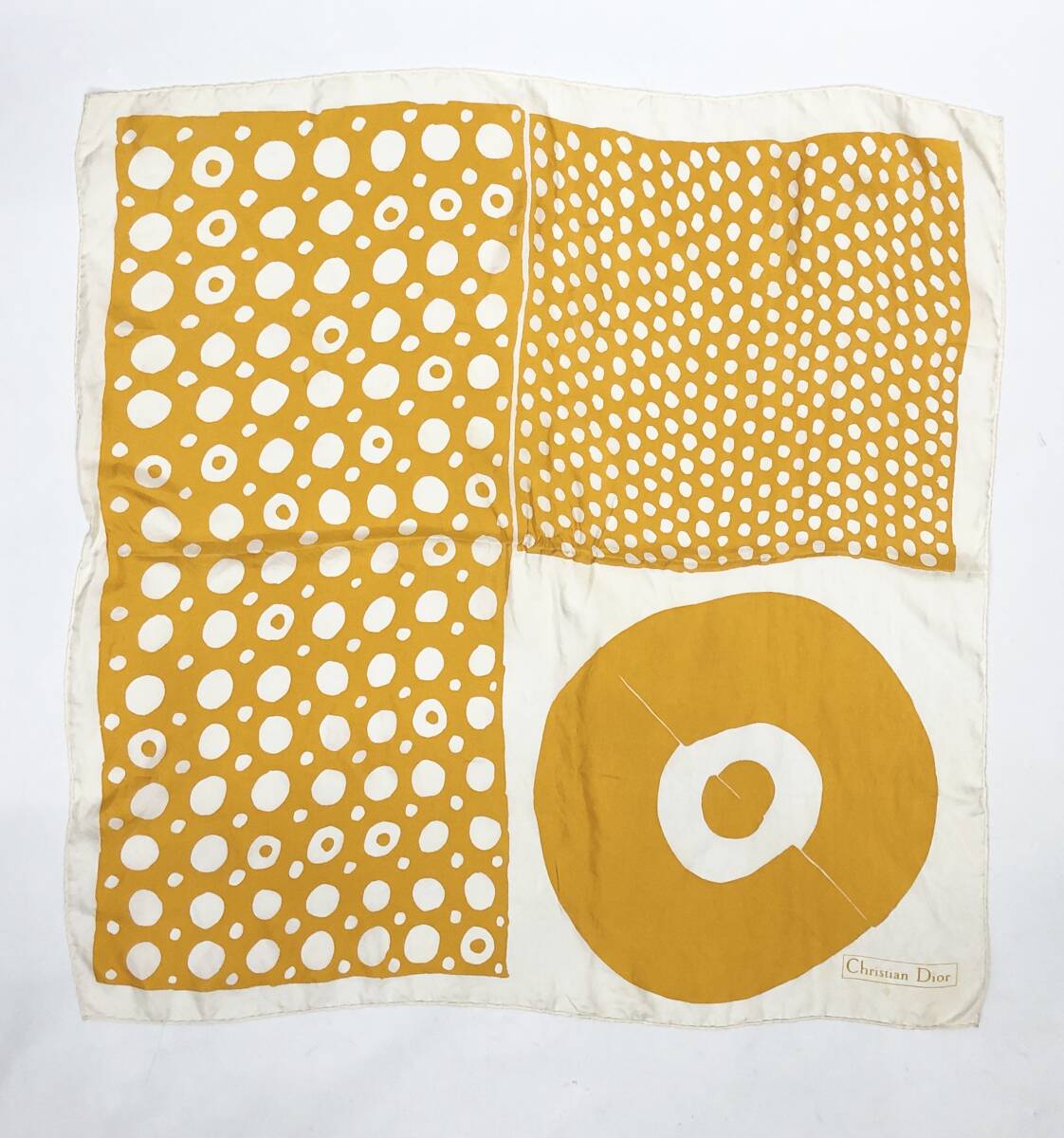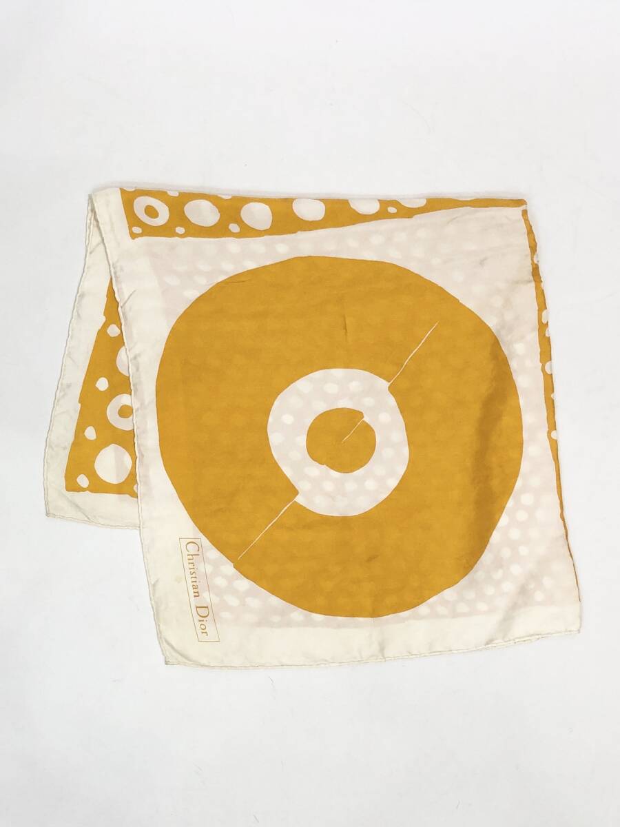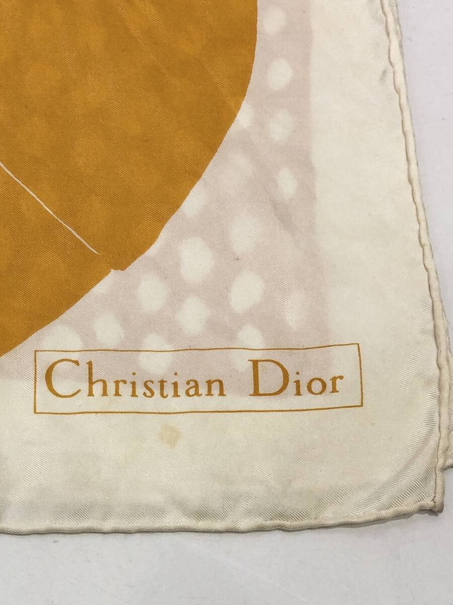 Christian Dior 総柄 大判 スカーフ ロゴ ドット柄 オレンジ ホワイト クリスチャンディオール カレ75 古着 ヴィンテージ■0930K② |