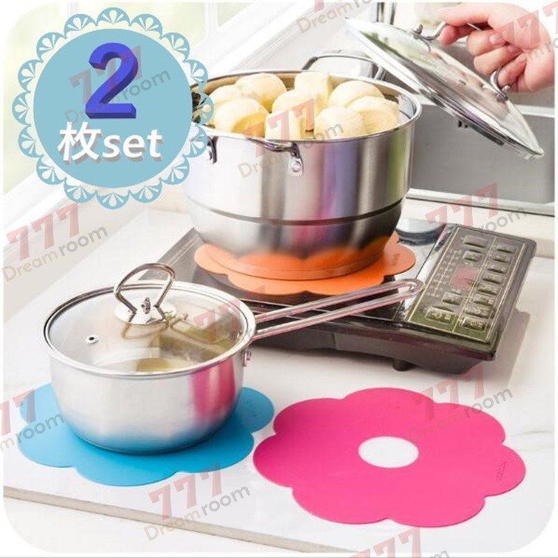 お得2枚組 フラワーモチーフ IHヒーター用 焼け焦げ防止 シリコン保護カバー 【D-122】IHマット 汚れ防止シート 耐熱