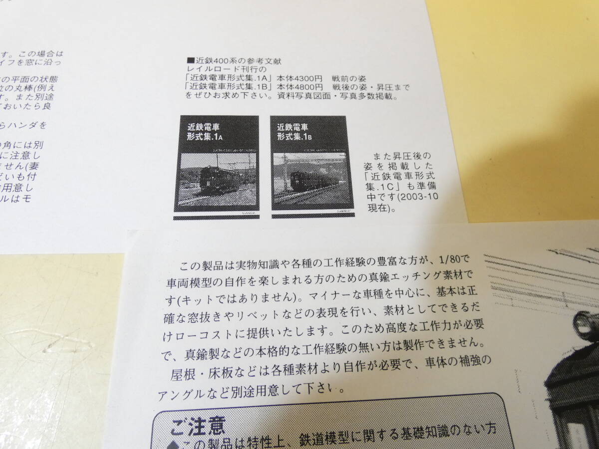 【鉄道模型】レイルロード 1/80 エッチング素材シリーズ №3001 近鉄モ400(401) 限定品 未組立品 【中古】J4 S303