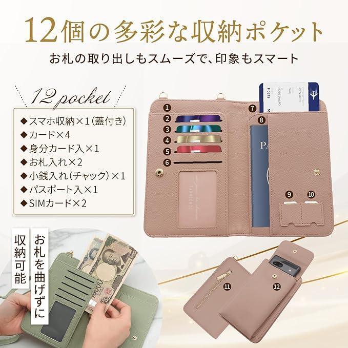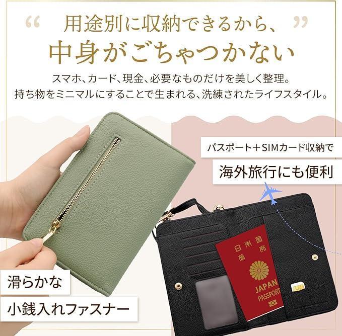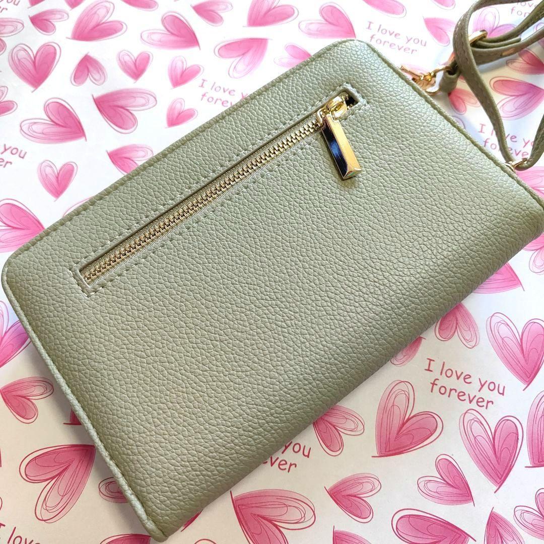 斜めがけスマホポーチ モランディカラー くすみグリーン ストラップ調整紐付き