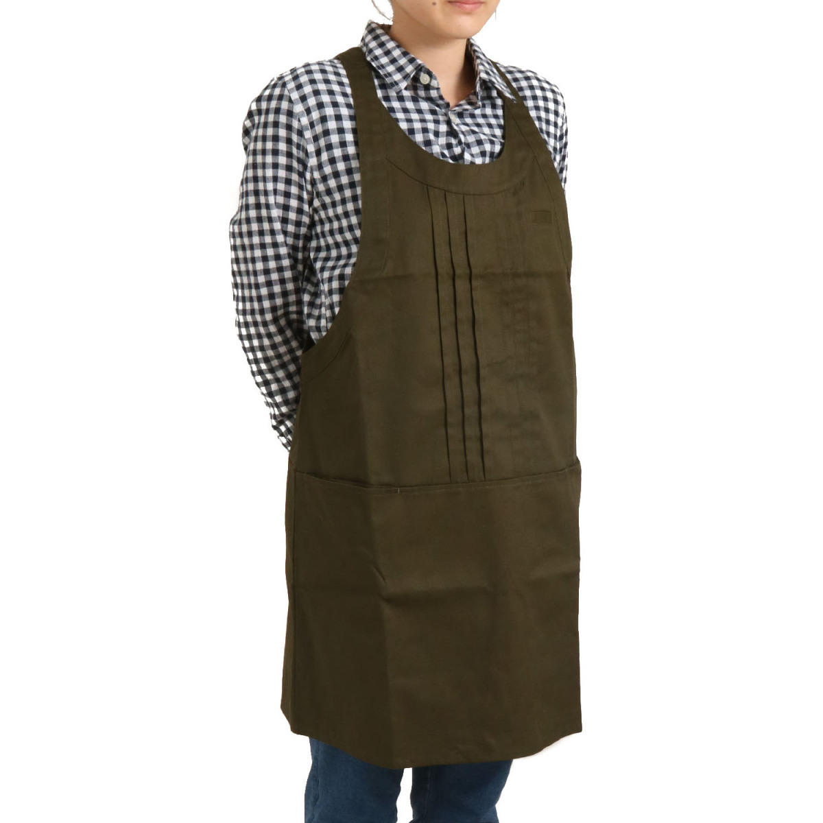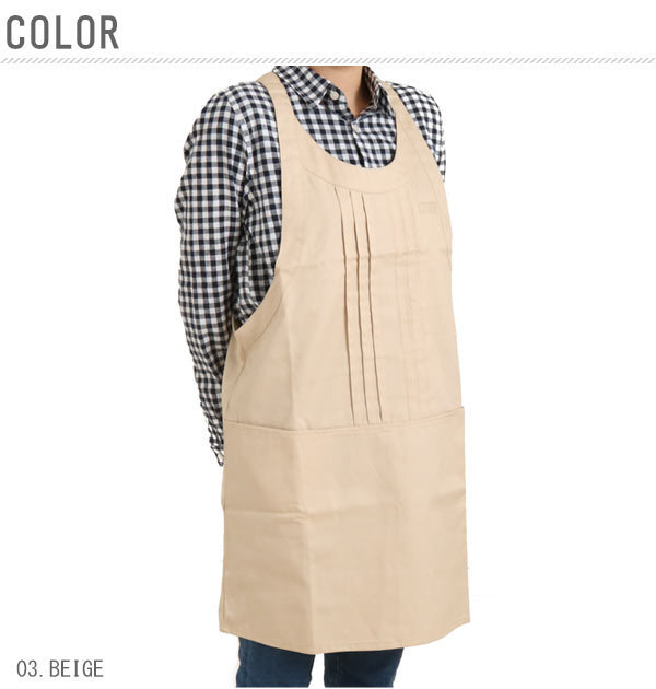 商品説明 | フロント部分にピンタックが入ったチュニックタイプのエプロン♪バックはサロペットスタイルでタックを入れて余裕を持たせています。キッチンワークやガーデニング、ホームパーティー、保育士さんにも!撥水性のある丈夫な生地なので水仕事も安心です。胸にはペン用ポケット!前部分にはオープンポケットが2つあり実用性も十分です。 |