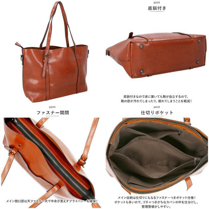 商品説明 | ・・シンプルでおしゃれなPUレザーの2WAYトートバッグが登場! ・【2WAY仕様】 ・手持ちとしてはもちろん、長さ調節可能なショルダーベルトを取り付けて、肩掛けや斜め掛けもOK。 ・【柔らかな生地感】 ・バッグ表面は光沢のあるPUレザー素材。お手入れもしやすく、使い勝手バツグン。 ・【ファスナー開閉】 ・メイン開口部は天ファスナー式で中身が見えずプライバシーを確保! ・【B5サイズが入る】 ・程よいマチがあり、500mlのペットボトルや長財布などB5サイズがすっぽり入る◎ ・【仕切りポケット】 ・メイン収納は仕切りにもなるファスナーつきポケット仕様!ポケットも多いので、ゴチャつきがちなカバンの中を仕分けし、整理整頓がしやすい。 ・【底鋲付き】 ・底鋲付きなので床に置いても鞄が自立するので、鞄の底が汚れてしまったり、擦れてしまうことを軽減! ・【通勤、通学に】 ・機能性とデザイン性で、通勤・通学用にピッタリ! ・【ポケット仕様】 ・メイン収納:オープンポケット×2、ファスナー付きポケット×2 ・フロント:オープンポケット×1 |