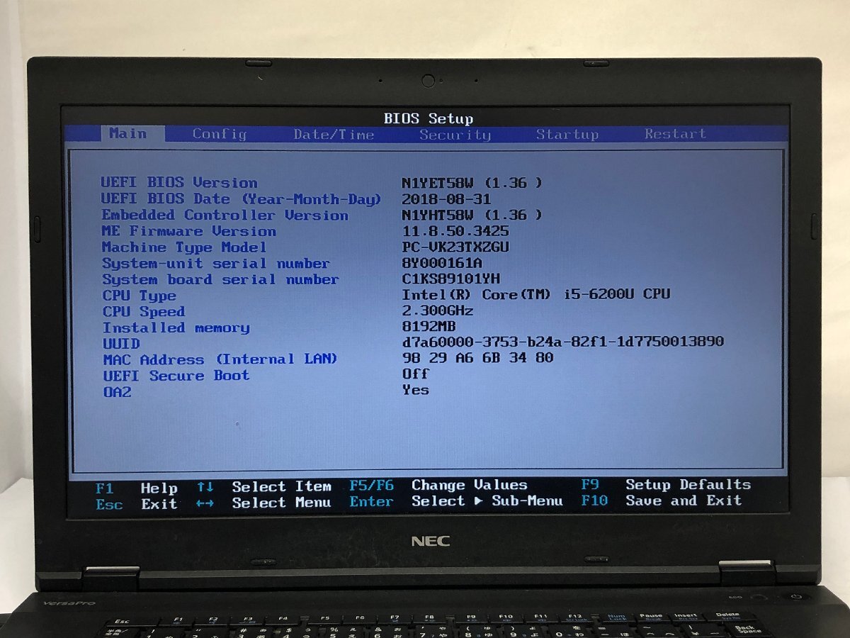 ジャンク/ NEC PC-VK23TXZGU Intel Core i5-6200U メモリ8.19GB ストレージ無し 【K22157】