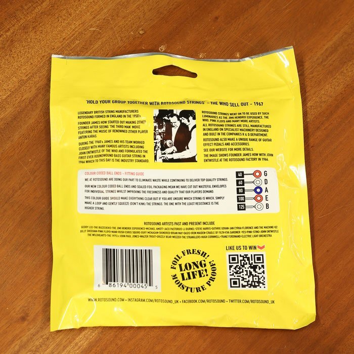 ロトサウンドは、イングランドのケントを拠点とする家族経営の工場において楽器用の弦およびアクセサリーを60年以上に渡り製造し続けてきました。 1958年以来、常に革新的な音楽の最先端を行くロトサウンドの弦は、ブリティッシュ・インベイジョン、パンク、ニューウェーブ、ブリット・ポップ、インディーなど、時代を象徴するレコードに使用されてきました。 高品質な弦を手頃な価格で提供するこだわりによって、あらゆる世代のミュージシャンに選ばれています。 RB40-5は、810mm~860mm(32~34インチ)ロングスケールの5弦用エレクトリック・ベース弦です。 品質や音色を犠牲にすることなく設計仕様を簡素化し、クラシックなラウンドワウンド・トーンを実現したニッケル・オン・スチールのベース弦です。 SPEC ■String Gauges: .040 / .060 / .080 / .100 / .125 ■Material: Nickel on Steel Roundwound ■Tone: Bright ■Output: Medium ●Made in United Kingdom |