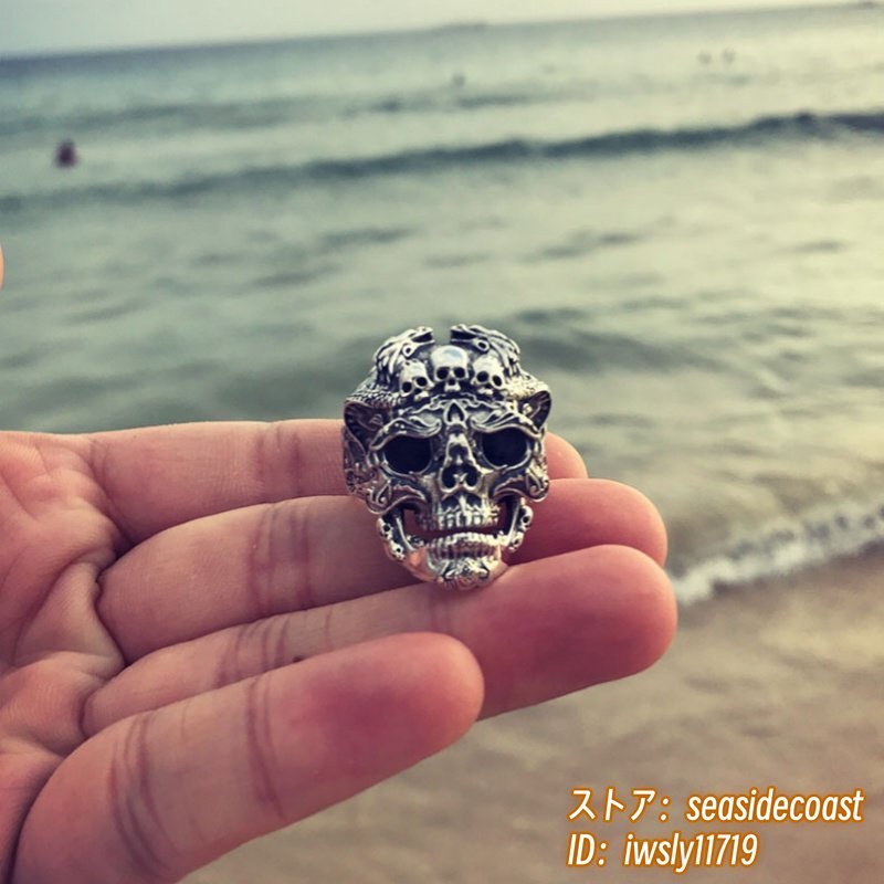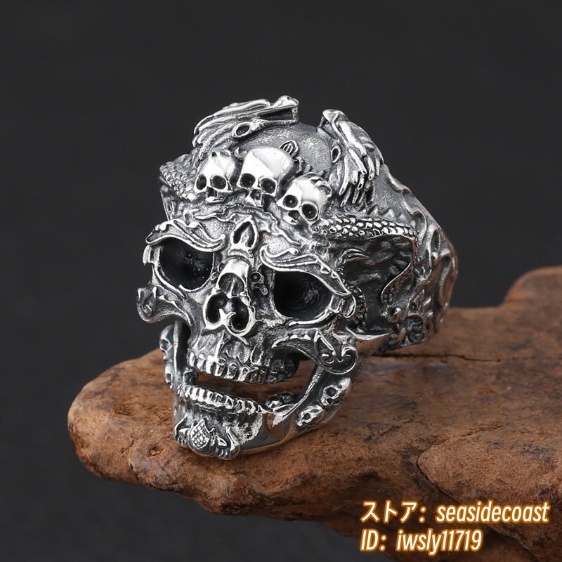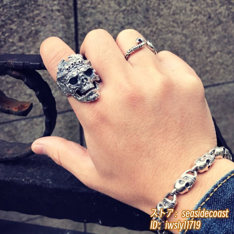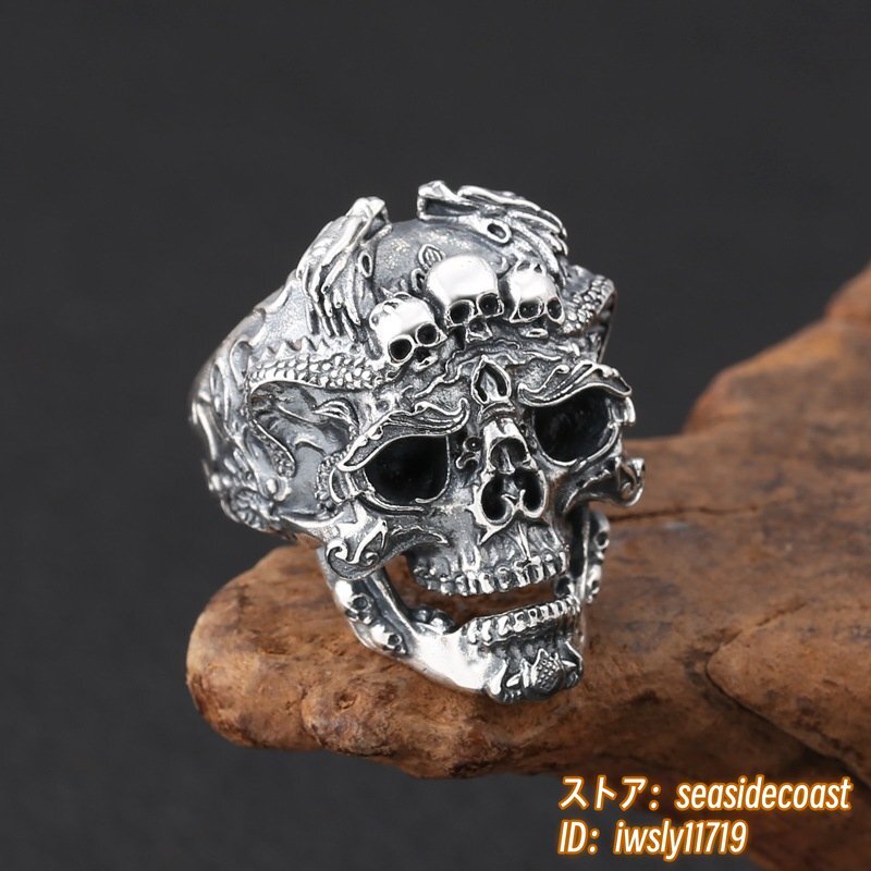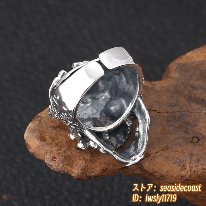 1円スタート◆指輪シルバー925リングドクロ 髑髏 アクセサリー ハードデザイン メンズ レディース 男女兼用フリーサイズ 調整可能