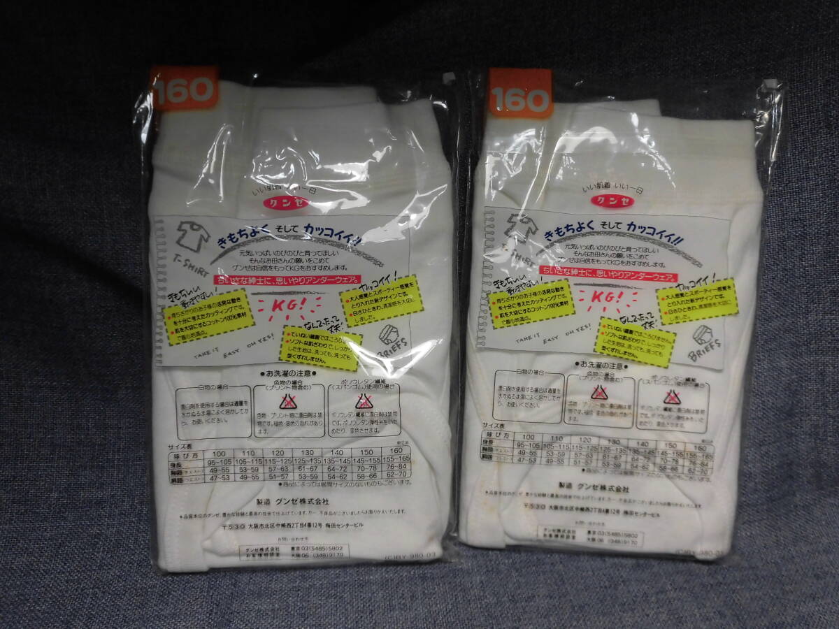 レトロ 2枚セット グンゼ KG アウトゴム 160サイズ ブリーフ パンツ 白 少年 ボーイズ 男児 スクール 5249