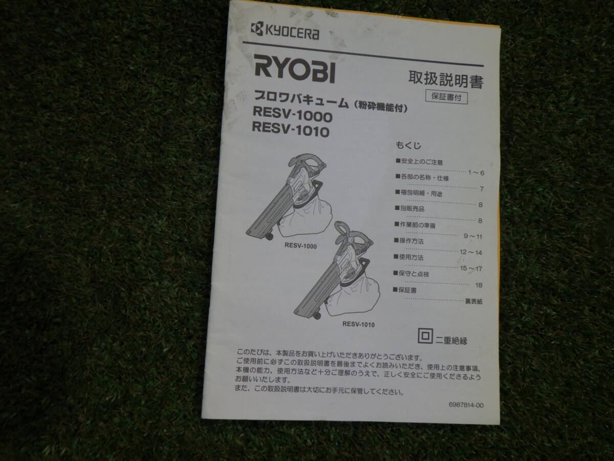 リョービ(RYOBI) ブロワバキューム RESV-1000 通電確認済み 吸引 100V コード 落ち葉 中古品 250606