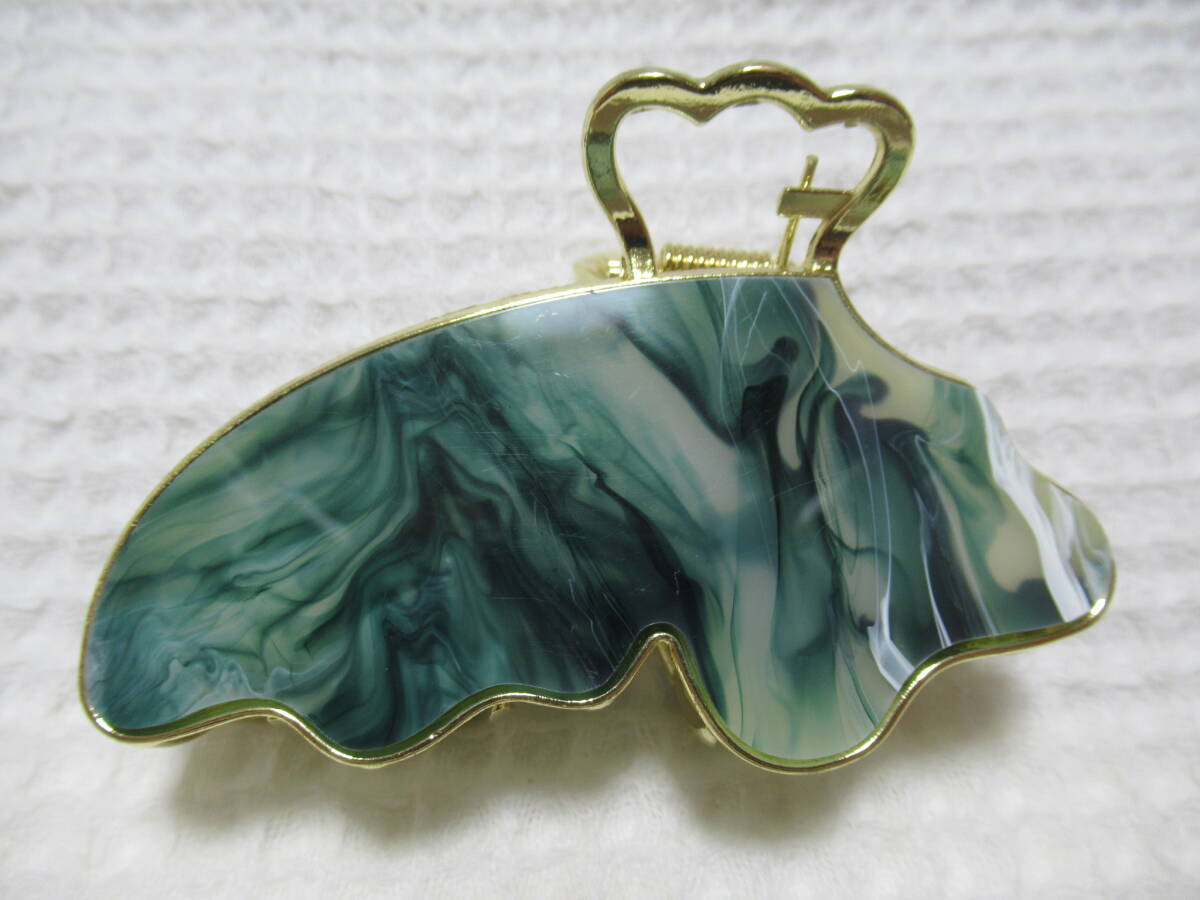 アクリル系付き ゴールドメタル蝶型バンスクリップ  グリーン・ホワイト系