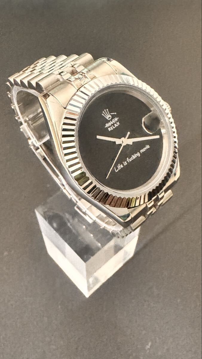 新品「Relax Rolex」 腕時計 自動巻き デイトジャスト ブラック文字盤 シルバー