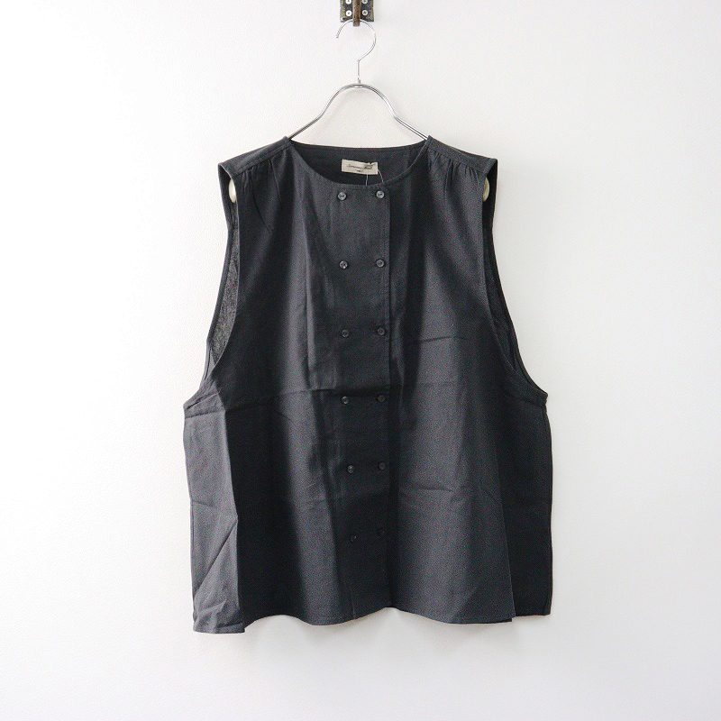 未使用 サマンサモスモス Samansa Mos2 SM2 シェフ釦ベスト F\チャコールグレー 綿麻 ノースリーブ ブラウス【2400014625028】