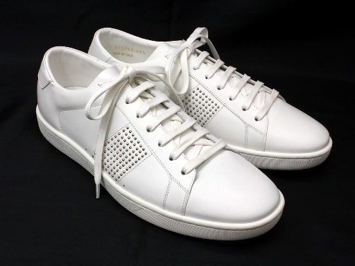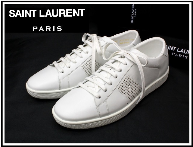 15万新品◆40=25cm◆【サンローラン】エディ 白レザースタッズスニーカー