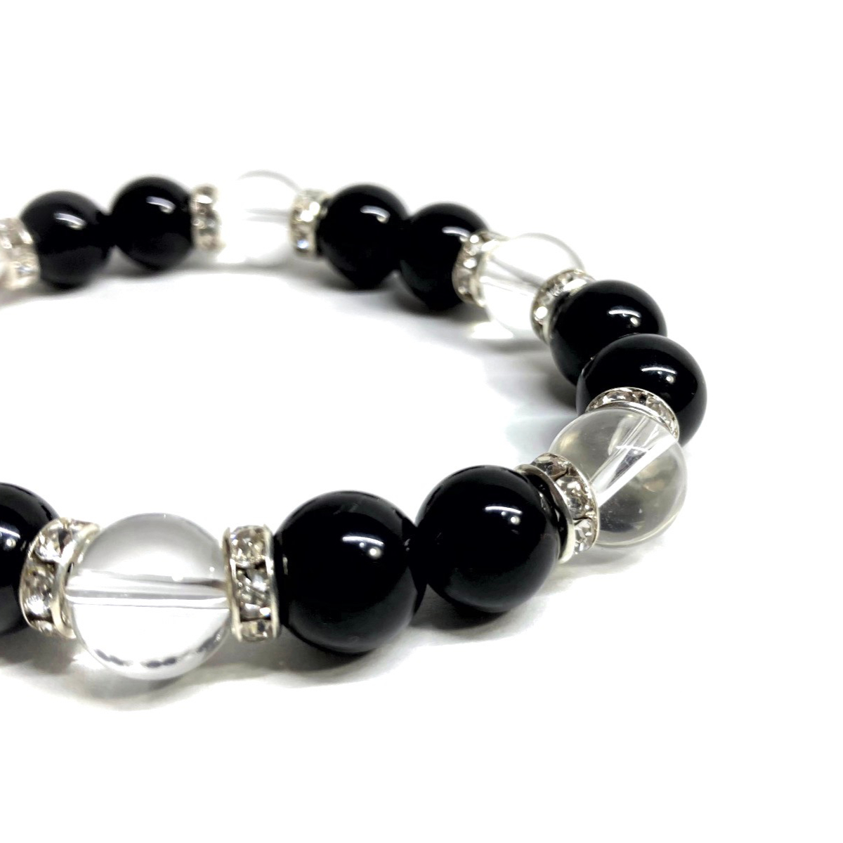 モリオン&水晶 パワーストーン ブレスレット 天然石ブレス (シルバー) 10mm メンズ・レディース 厄除け 開運 願望成就 魔よけ ☆