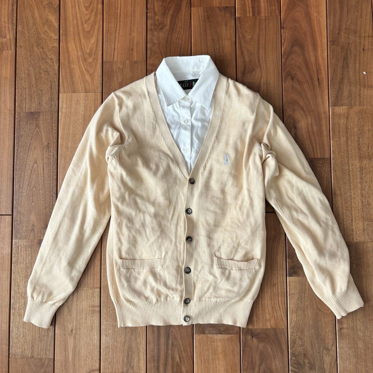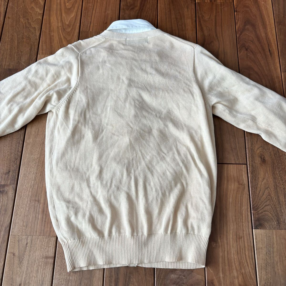 ※シャツは襟元に汚れ、カーディガンは部分的な汚れと糸引きがあります