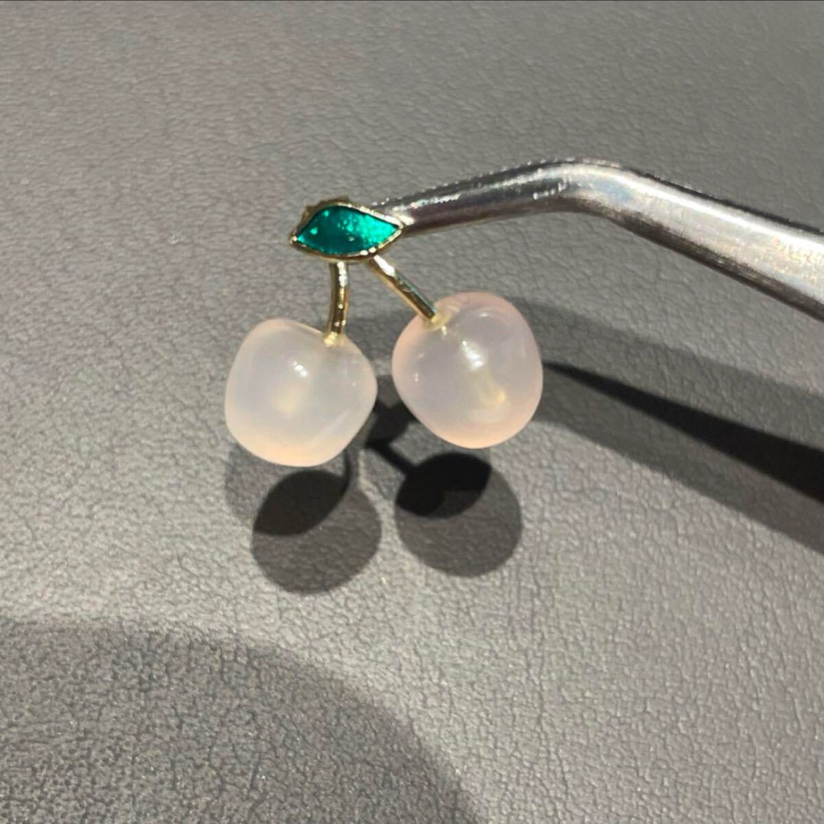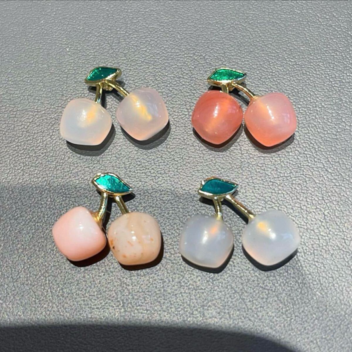 出品物はアゲート(瑪瑙)ピンク・白・オレンジ さくらんぼ型 天然石ペンダント 4つセットです!!