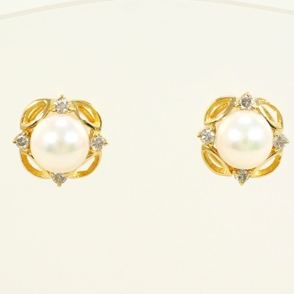 | K18YG ピアス パール(真珠) ダイヤ 総重量約1.6g 中古 美品 送料無料 | |