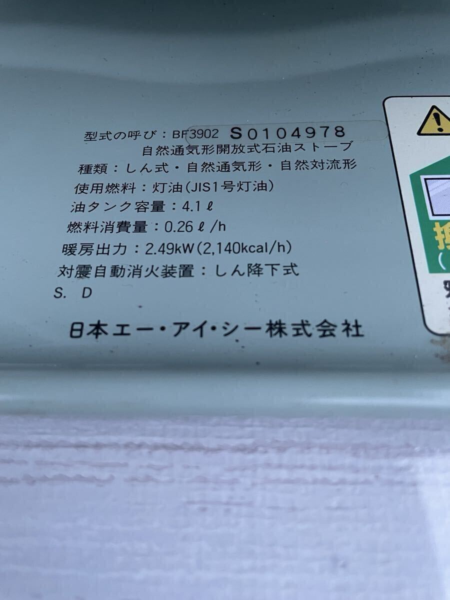 Aladdin アラジン BF-3902 自然通気形開放式石油ストーブ 暖房 S0104978付属品あり