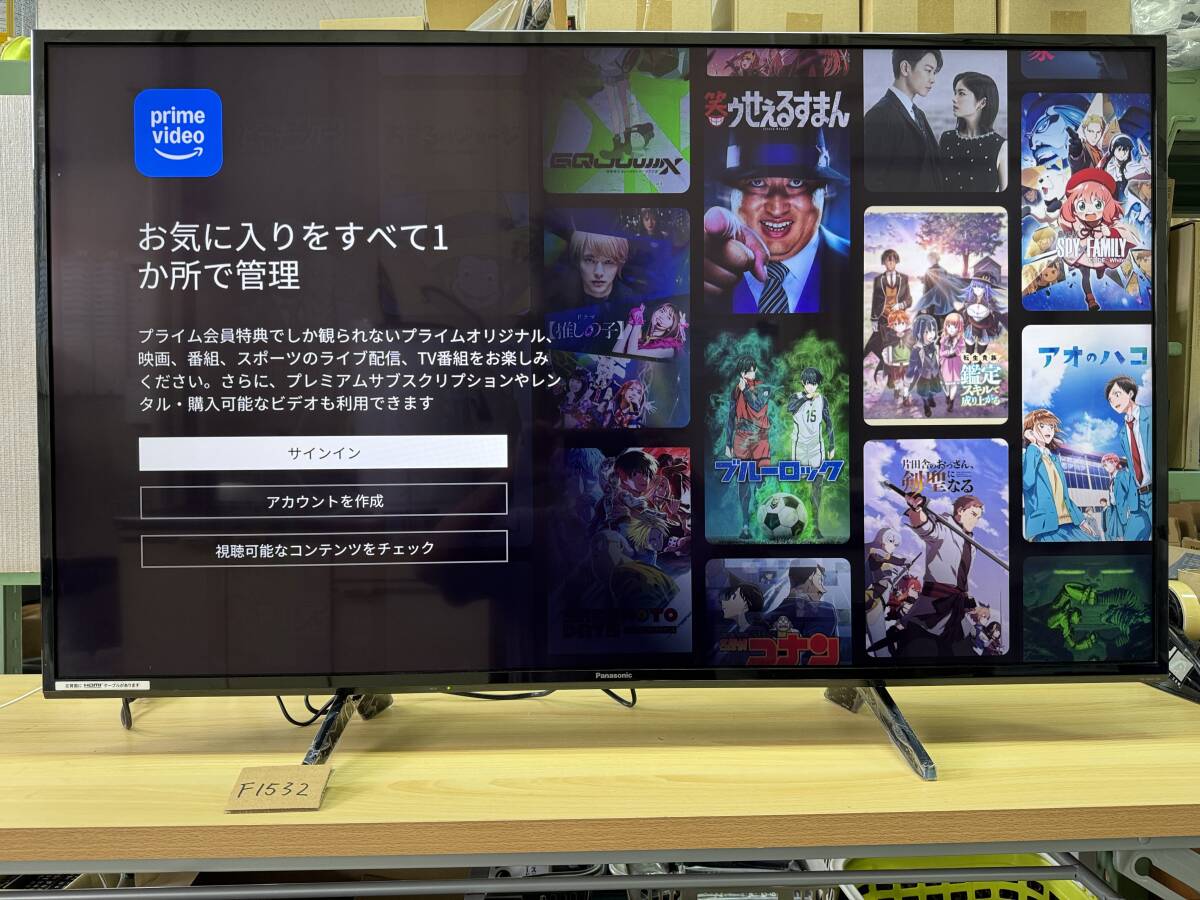 Panasonic 49V型 4K 2019年製 TH-49GX750HT パナソニック液晶テレビ 動画アプリ搭載 NETFLIX YouTube Amazon prime等視聴可 管理F1532