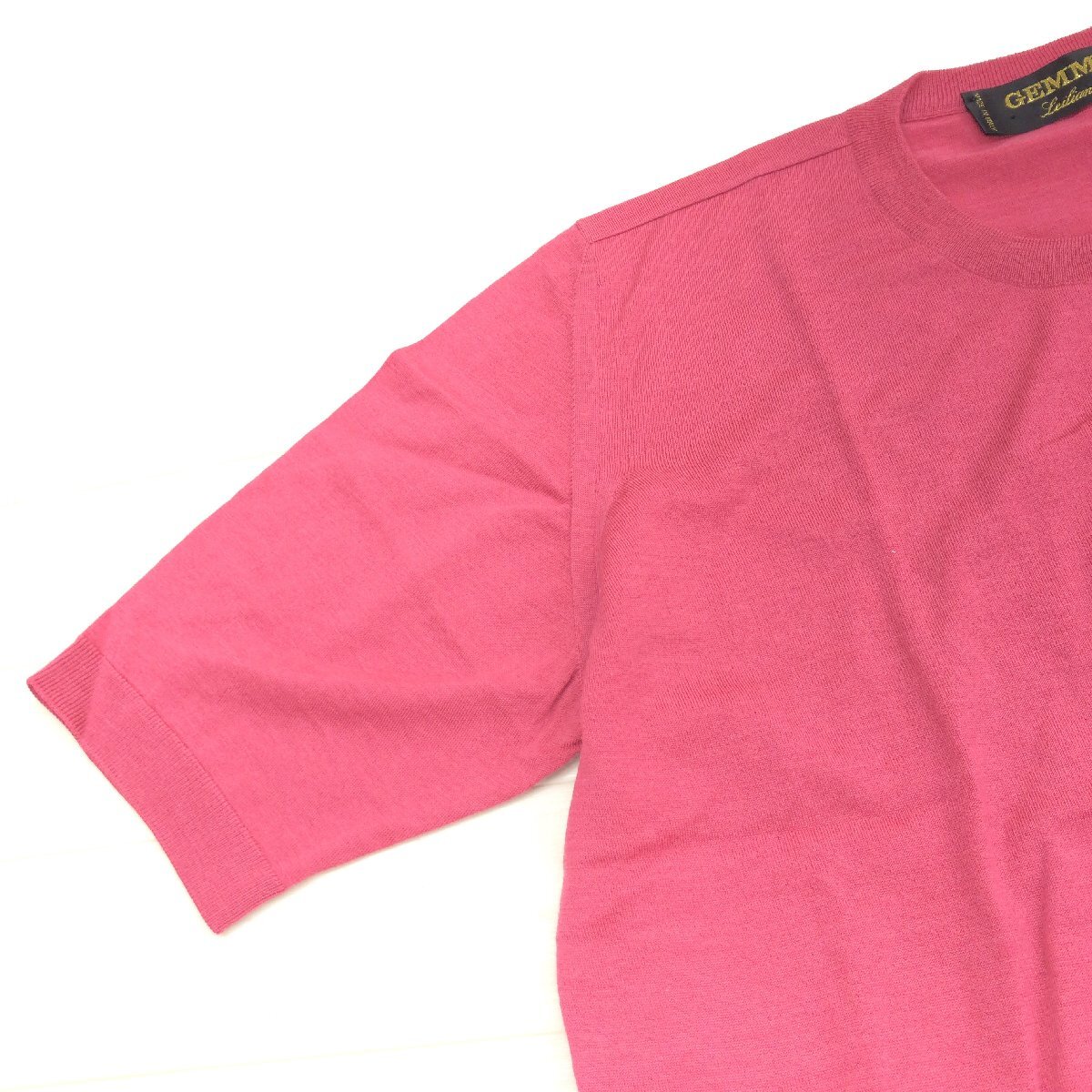 美品 伊製 GEMMA Leilian レリアン ウール100% クルーネック セーター 11(L) ピンク系 イタリア製 カットソー 半袖 国内正規品 レディース