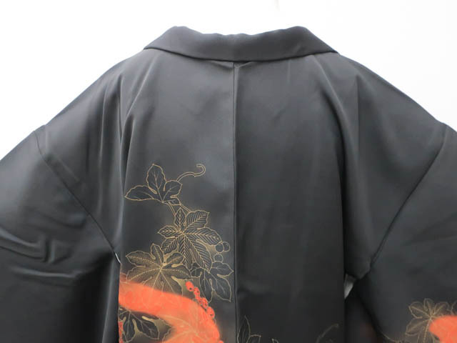 リサイクル商品のため、シワがございますがご着用いただけると存じます。 地色は黒です。 1枚目の画像が近いお色かと思われます。 素材は正絹です。 |